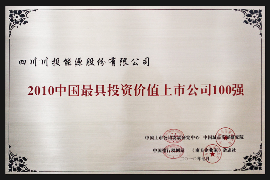 近年來,川投能源備受資本市場和社會各界青睞,連續(xù)入選滬深300指數(shù)樣本股、中證800指數(shù)樣本股、上證380指數(shù)樣本股、MSCI新興市場指數(shù)、MSCI ACWI全球指數(shù),同時作為首批中國A股股票納入富時全球股票指數(shù)系列和標普新興市場全球基準指數(shù);先后獲得“中國證券市場年會金鳳凰獎”、“中國上市公司市值管理百家優(yōu)秀公司”、“最守誠信上市公司”、“最具投資價值上市公司”、《上海證券報》“公司治理資本創(chuàng)新公司獎”等榮譽;獲得中華全國總工會授予的“抗震救災(zāi)恢復(fù)重建工人先鋒號”、“全國汶川地震災(zāi)后恢復(fù)重建先進集體”;1998—2011年連續(xù)13年獲得“四川省重合同守信用先進單位”稱號;2011年8月,榮獲“全國模范勞動關(guān)系和諧企業(yè)”稱號;2011年11月,在《每日經(jīng)濟新聞報》聯(lián)合多家媒體和116家機構(gòu)評委傾力打造的全國上市公司“口碑榜”評選中,被代表市場2萬億元資金的廣大投資者評選為“最具成長潛力上市公司”;2011年12月,榮獲上海證券交易所評選的中國公司治理最高榮譽——“2011年度董事會獎提名獎”、“2011年度典型并購重組案例獎提名獎”;2012年9月,川投能源黨委榮獲“全省創(chuàng)先爭優(yōu)先進基層黨組織”稱號; 2015年公司還獲得了由中國上市公司協(xié)會、中國證券投資者保護基金公司、上海證券交易所、深圳證券交易所、中國證券業(yè)協(xié)會、中國證券投資基金業(yè)協(xié)會聯(lián)合頒發(fā)的“2015中國最受投資者尊重的上市公司”入圍獎。2022年6月,入選中國上市公司協(xié)會“2021年度A股上市公司現(xiàn)金分紅榜單豐厚回報榜”;2023年11月獲得中國證券報頒發(fā)的“第二十五屆上市公司金牛獎·2022年度金信披獎”;2024年10月被證券時報評選為“主板上市公司價值100強”。主體信用等級長期維持AAA,以優(yōu)良的業(yè)績持續(xù)回報投資人,受到國內(nèi)國際兩個市場的高度關(guān)注和價值認可。