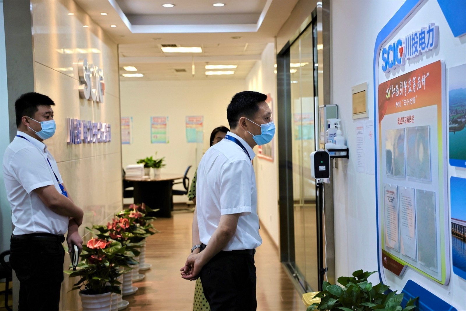 冉蘭平一行首先對川投電力的辦公區(qū)域、公共區(qū)域等關(guān)鍵點位進行了檢查,并詳細查看了防疫物資儲備情況、疫情防控工作臺賬、人員健康登記臺賬,詢問了個別“黃碼”人員和“軌跡重疊”人員的核酸檢測情況和居家辦公情況等。隨后,冉蘭平一行又采取“掃樓”方式,對川投大廈6樓、9樓各辦公室的疫情防控工作落實情況進行逐個督查檢查。