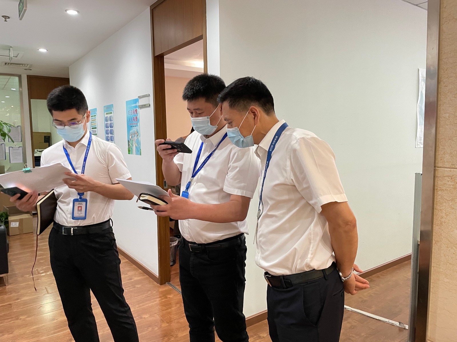公司疫情防控辦相關(guān)人員參加檢查。