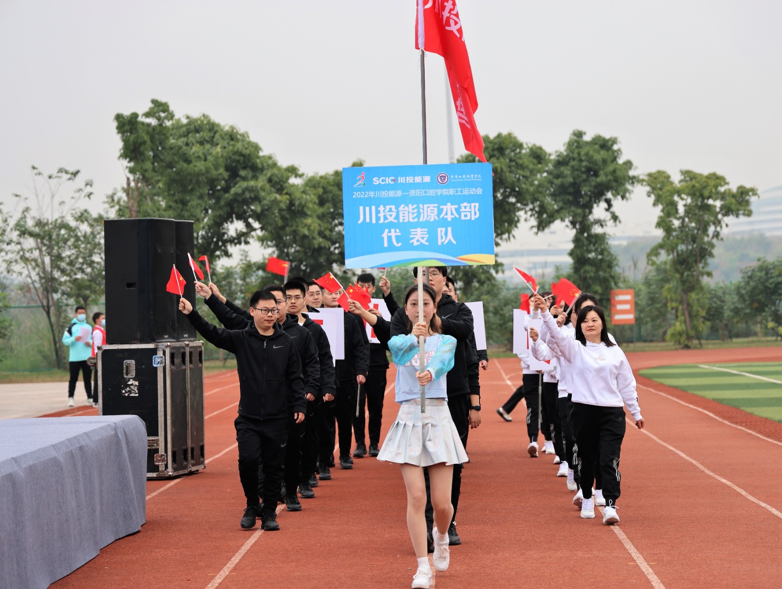 9時(shí)30分,楊洪宣布:“2022年川投能源-資陽(yáng)口腔職學(xué)院職工運(yùn)動(dòng)會(huì)開幕!”彩煙騰空而起,全場(chǎng)掌聲雷動(dòng),歡呼不斷,正式拉開比賽帷幕。