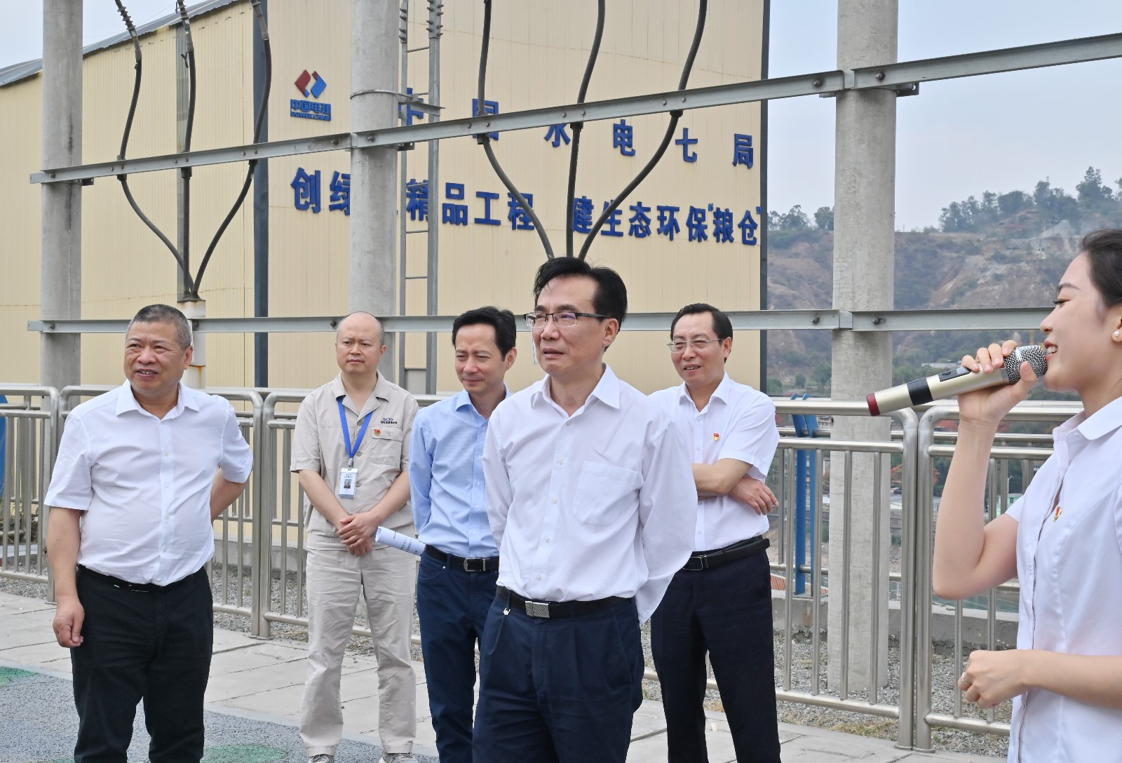 吳曉曦一行先后來到銀江水電站施工變電站觀景平臺(tái)、上游圍堰詳細(xì)了解項(xiàng)目整體規(guī)劃、建設(shè)意義、工期計(jì)劃、目前施工進(jìn)度、安全環(huán)保及防洪度汛等情況。