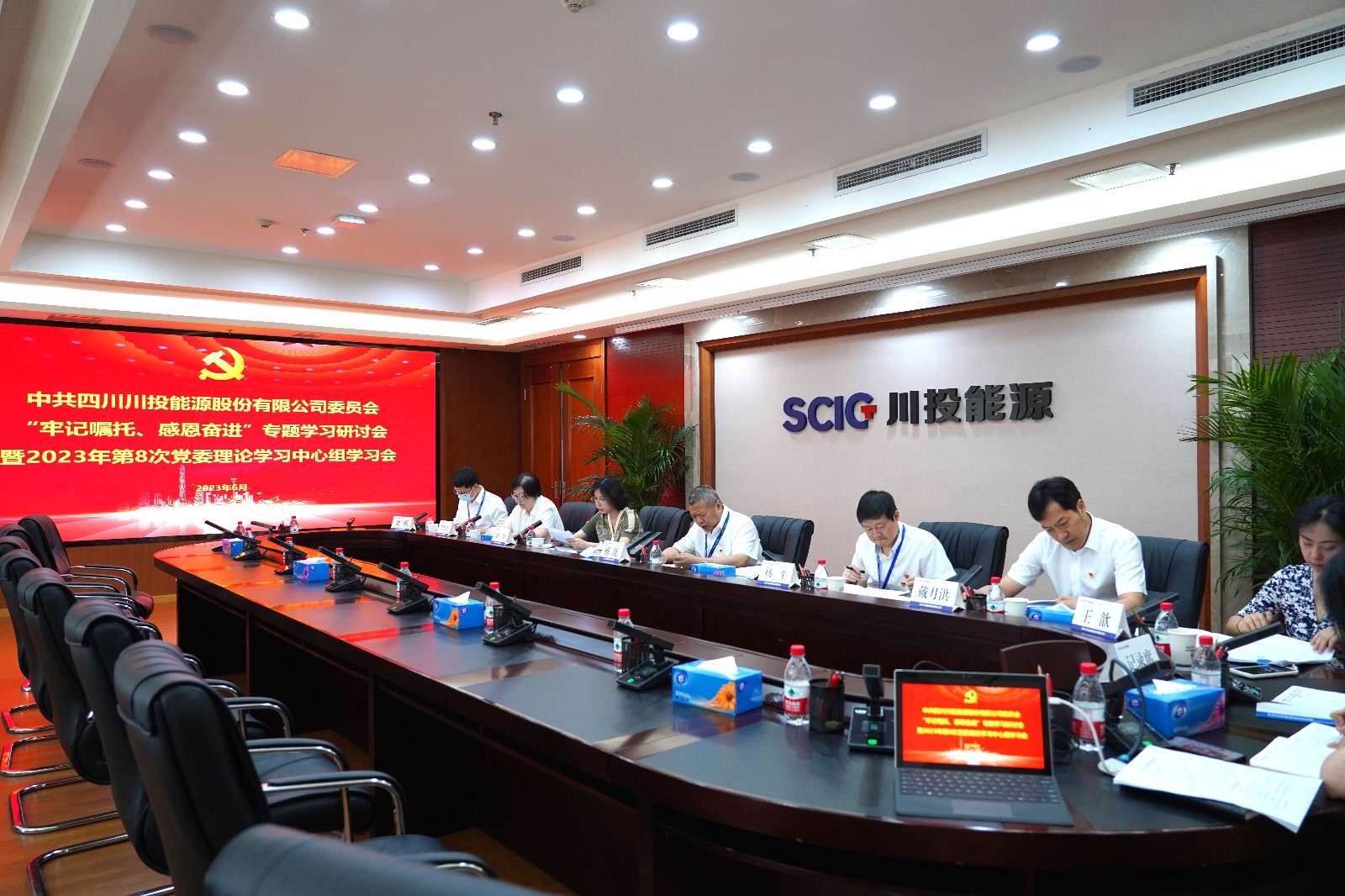 為深入開展學(xué)習(xí)貫徹習(xí)近平新時代中國特色社會主義思想主題教育,6月12日,川投能源組織開展“牢記囑托、感恩奮進(jìn)”專題學(xué)習(xí)研討會暨黨委理論學(xué)習(xí)中心組學(xué)習(xí)會。公司黨委書記、副董事長、總經(jīng)理楊洪主持會議并帶頭作交流發(fā)言。公司在家領(lǐng)導(dǎo)班子成員、總經(jīng)理助理參加學(xué)習(xí)研討。