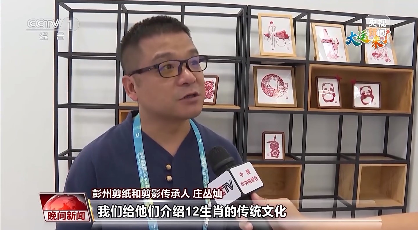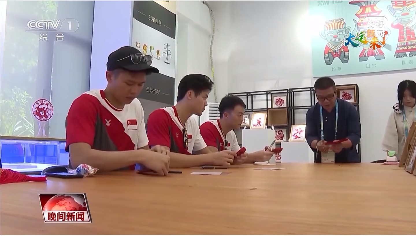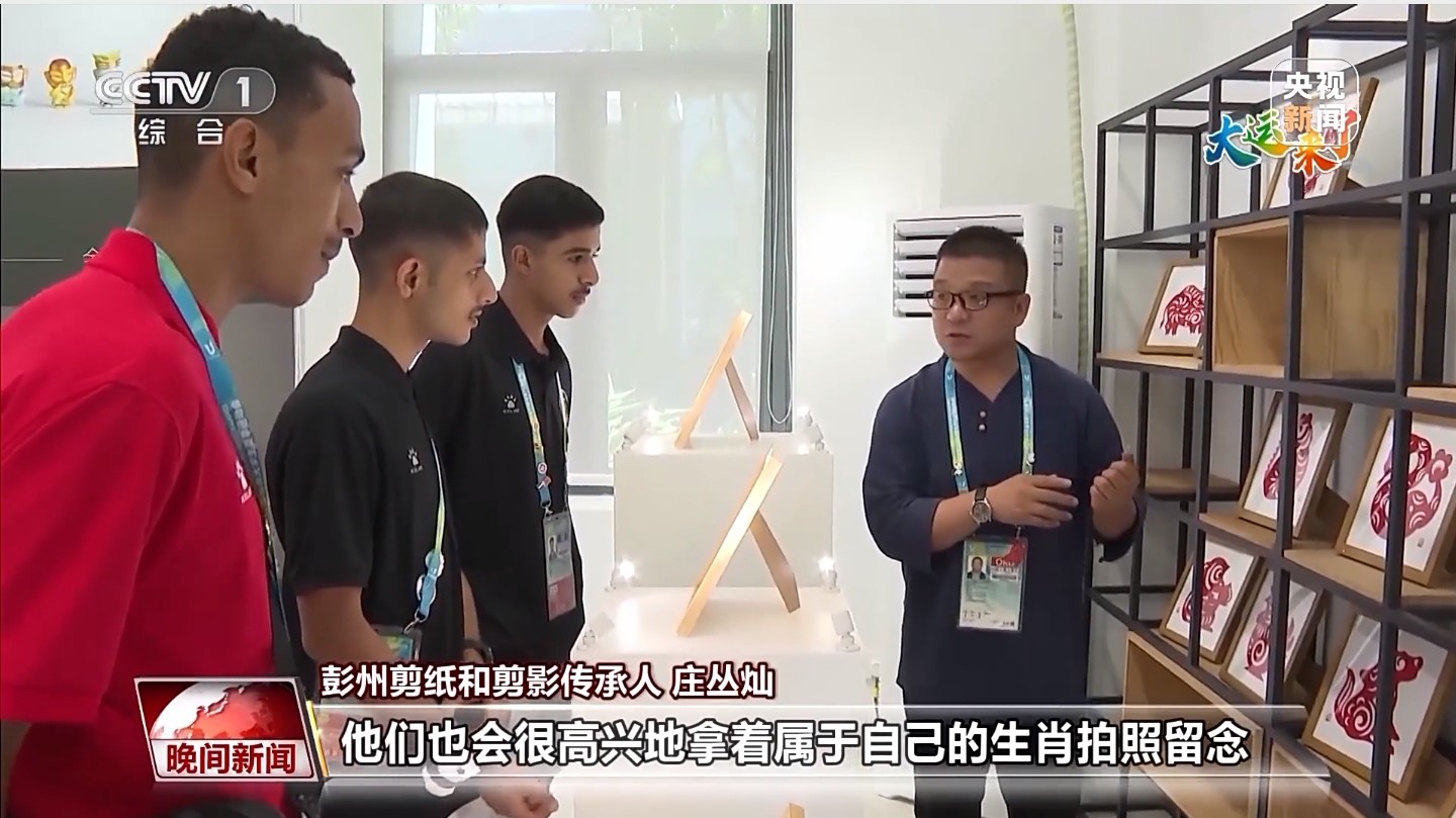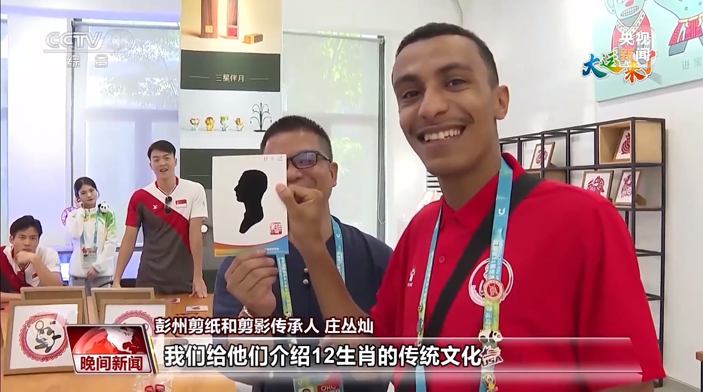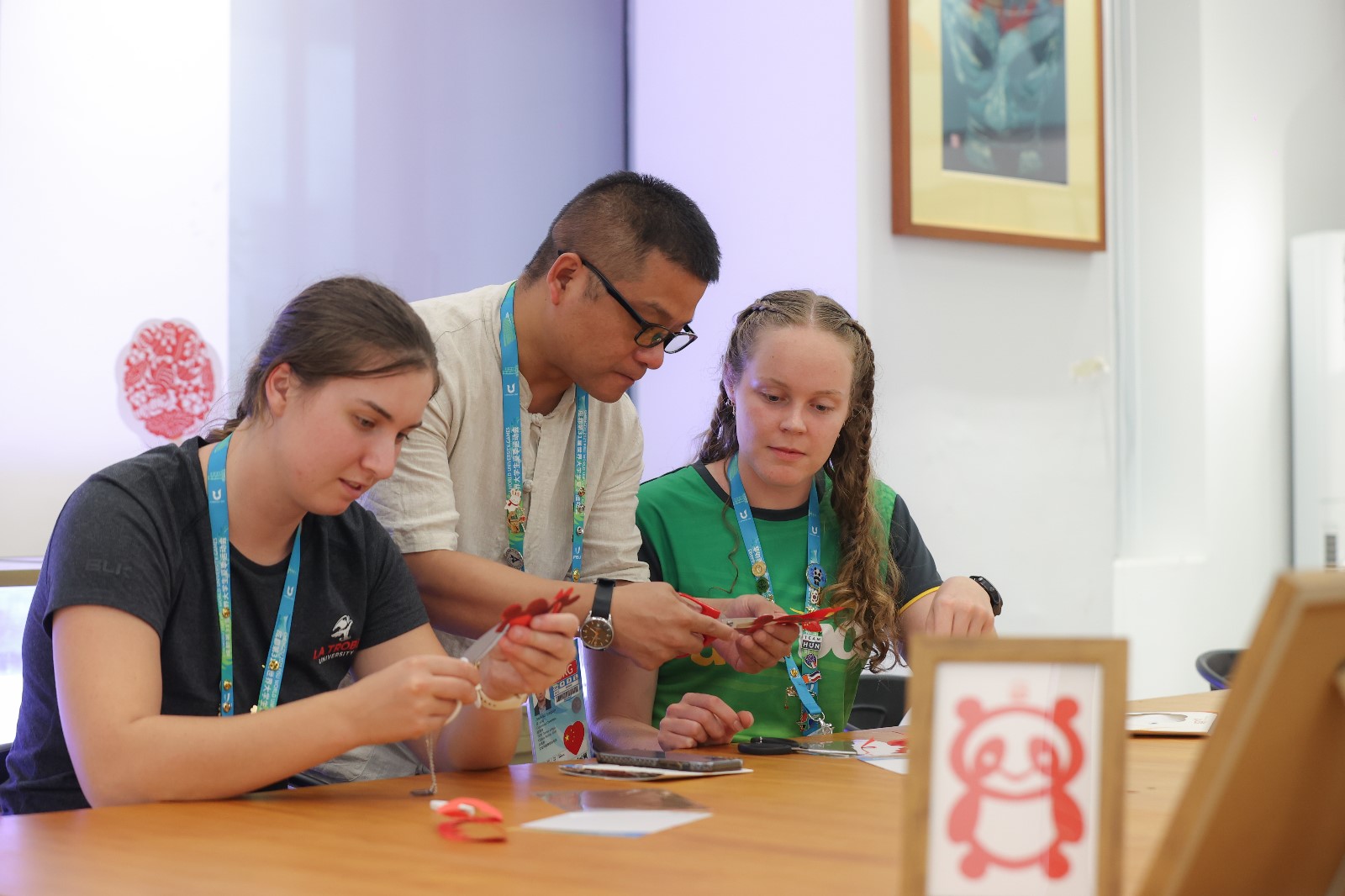 大運會期間,成都大運村里掀起一股“非遺熱”,引得各大媒體前來競相報道?;芋w驗中心里,神奇的剪紙也吸引了中外運動員們紛紛前來參與體驗。
