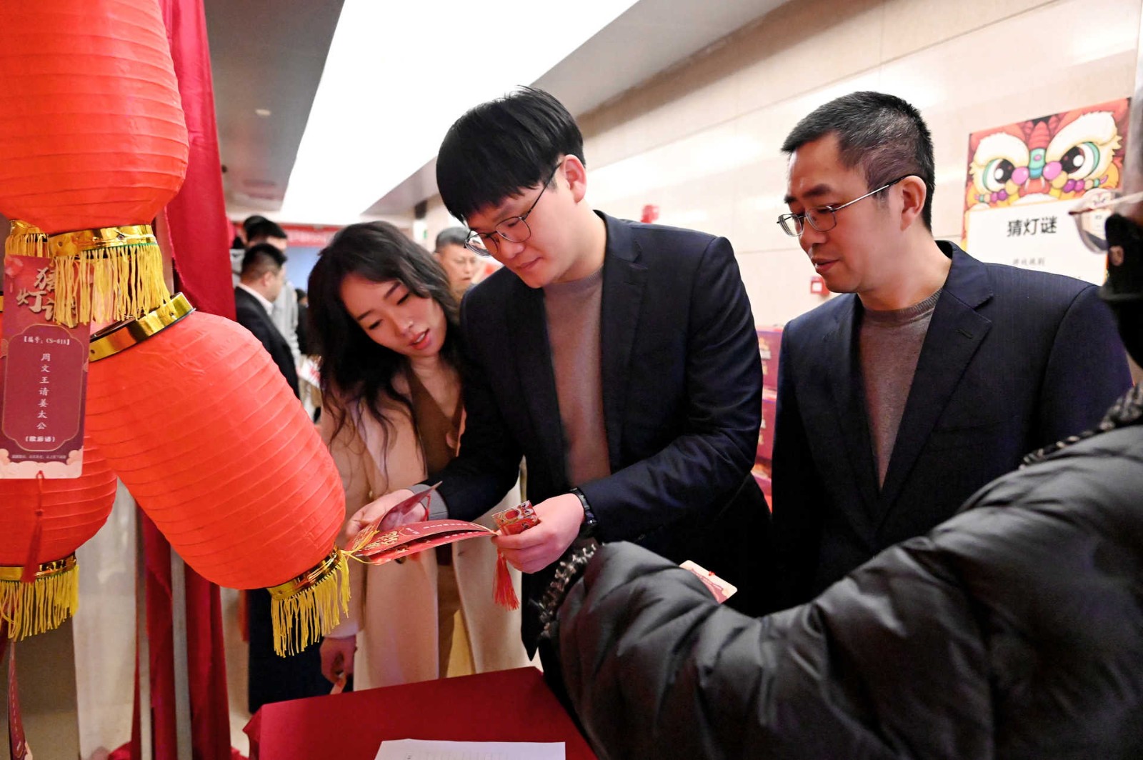 此次活動采用游園方式,現(xiàn)場設(shè)置了民俗體驗區(qū)、非遺手作區(qū)、民俗體驗區(qū)、新春互動區(qū)、游戲互動區(qū)等5個活動區(qū)域,涵蓋猜燈謎、剪窗花、做龍燈、滾滾樂等8個活動?;顒蝇F(xiàn)場每一處都用心裝扮,火紅的中國燈籠、精美的傳統(tǒng)對聯(lián)伴隨濃郁的新年味道彌散在會場的每一個角落。大家爭先恐后、玩勁十足,盡享新春的熱鬧與喜悅!有的圍著掛著紅線繩的燈謎卡片,仔細(xì)閱讀謎語,認(rèn)真思考,沉浸在猜謎的樂趣中;有的圍在四川剪紙非遺傳承人莊叢燦老師周圍,一邊聆聽著剪紙的技巧,一邊仔細(xì)修理邊角,用心精雕細(xì)琢;有的在學(xué)習(xí)制作龍燈,他們展現(xiàn)出極高的熱情和創(chuàng)造力,根據(jù)自己的想象,給龍燈增添了各種裝飾,如彩紙、亮片等,使得每個龍燈都獨具特色。