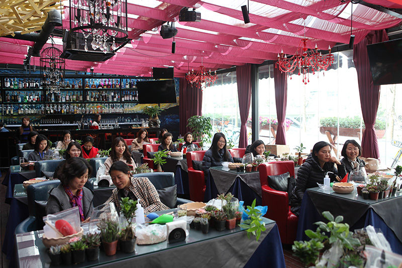 隨后,園藝老師向大家介紹了多肉植物的類別品種、形態(tài)特征、栽培方法以及微景觀的藝術(shù)設計與賞鑒。在體驗環(huán)節(jié),面對一棵棵萌態(tài)可掬的“小鮮肉”,栩栩如生的小擺飾,精美別致的花盆,大家興奮不已,躍躍欲試。工作中干練的女漢子變成了心靈手巧的園藝師,她們小心翼翼地將嬌柔的植物安入花內(nèi),鋪上彩色石子,放上小飾品,每個人都發(fā)揮著豐富的想象和新奇的創(chuàng)意,一座座“迷你小花園”各具特色,極富設計感。大家紛紛拿出手機拍下作品,記錄下活動的美好瞬間。喜歡養(yǎng)花的姐妹們還向老師請教花卉種植和養(yǎng)護知識,每個人的臉上都洋溢著輕松和愉悅。