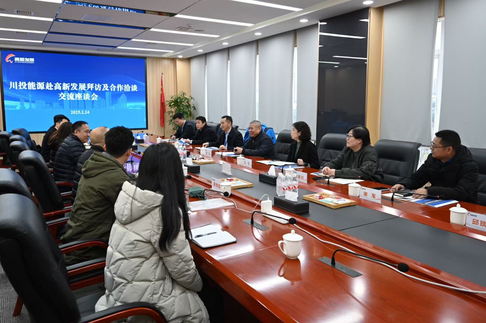 2月24日,川投能源黨委書記、副董事長、總經理楊洪率隊拜訪成都高新發(fā)展股份有限公司,雙方就深化合作進行座談交流。高新發(fā)展黨委書記、董事、總經理馮東主持座談。