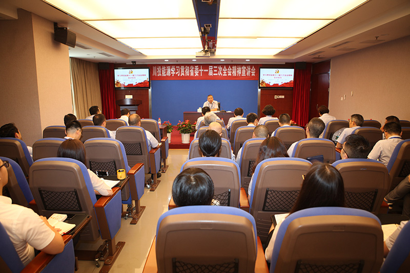 8月10日上午,川投能源在前期學(xué)習(xí)省委十一屆三次全會(huì)精神的基礎(chǔ)上,結(jié)合公司經(jīng)營(yíng)發(fā)展形勢(shì),對(duì)全會(huì)精神進(jìn)行集中宣講。公司黨委書(shū)記、總經(jīng)理?xiàng)詈閭鬟_(dá)宣講全會(huì)精神,并就貫徹落實(shí)會(huì)議精神進(jìn)行了安排部署。公司紀(jì)委書(shū)記冉蘭平主持會(huì)議,公司本部全體員工、所屬公司黨委、黨總支委員及班子成員參與宣講學(xué)習(xí)。