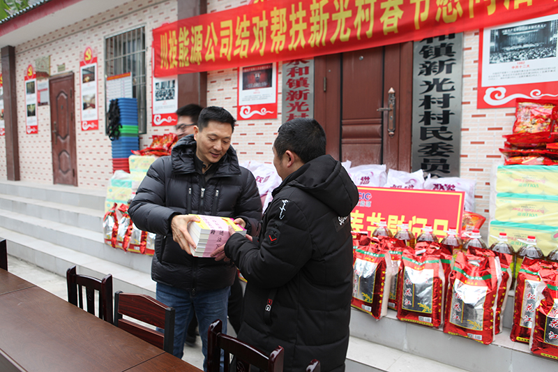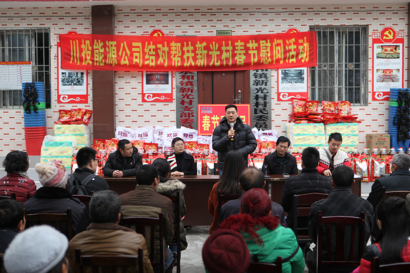 慰問現(xiàn)場,冉書記代表公司黨委和全體員工,對新光村父老鄉(xiāng)親表示誠摯的新春祝福和問候。冉書記指出,黨的十九大吹響了全面消滅貧困、實現(xiàn)小康號角,經(jīng)過幾年的努力,川投能源對口幫扶村面貌煥然一新,這得益于黨和國家的好政策,得益于扶貧干部和當(dāng)?shù)卮甯刹康墓餐?,得益于廣大鄉(xiāng)親父老的勤勞、智慧和汗水。接下來,川投能源將繼續(xù)深入貫徹中央、省委及集團公司精準脫貧精神,創(chuàng)新扶貧工作思路,提高幫扶工作標準,立足實際,努力為幫扶村群眾辦更多的實事、好事,以優(yōu)異的工作業(yè)績喜迎新中國成立70周年。