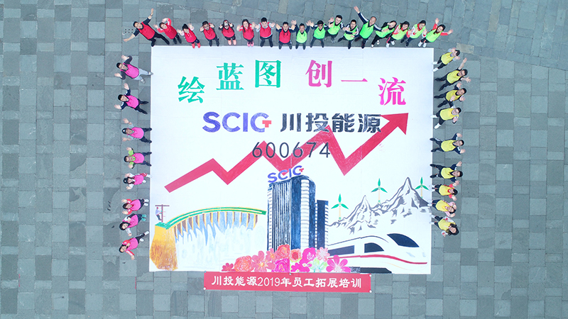 為保障素質(zhì)拓展順利開展,公司認(rèn)真組織、精心籌備,旨在加深提煉公司企業(yè)文化理念,加速新老員工溝通磨合,加強隊伍協(xié)作互信。培訓(xùn)過程中,全體參訓(xùn)人員被隨機分成四組,大家定隊名、呼口號、唱隊歌,一一展示團(tuán)隊風(fēng)采,個個激情滿懷、斗志昂揚?;顒又写蠹覉F(tuán)結(jié)協(xié)作、你追我趕、奮力拼搏、難分伯仲,其中最振奮人心的項目是“共繪藍(lán)圖”。隊員們分別在四塊畫布上勾勒、設(shè)計、涂色,有的負(fù)責(zé)統(tǒng)籌安排,有的負(fù)責(zé)色彩調(diào)配,有的負(fù)責(zé)勾勒初描,有的負(fù)責(zé)著色上色,大伙兒熱火朝天,忙得不亦樂乎。當(dāng)我們親手繪制的四塊畫布首尾相接拼裝成整幅“藍(lán)圖”的剎那,大家不禁歡呼雀躍起來:首先躍入眼簾的是象征川投能源股票長紅的紅色箭頭,以及“川投能源”LOGO和股票代碼;畫布正上方醒目的“繪藍(lán)圖、創(chuàng)一流”標(biāo)語亮出了此次活動主題和企業(yè)愿景;畫布正中央是高高聳立的川投大廈,四周花團(tuán)錦簇,象征著各所屬公司在川投集團(tuán)領(lǐng)導(dǎo)下百花齊放、大放異彩。畫布四周還有雄偉的水電大壩,高速前行的“復(fù)興號”,象征新能源的風(fēng)力發(fā)電機組……那一刻,我們仿佛看到了川投能源創(chuàng)西部一流的愿景已躍然紙上,“千億川投”的宏偉畫卷正徐徐展開。