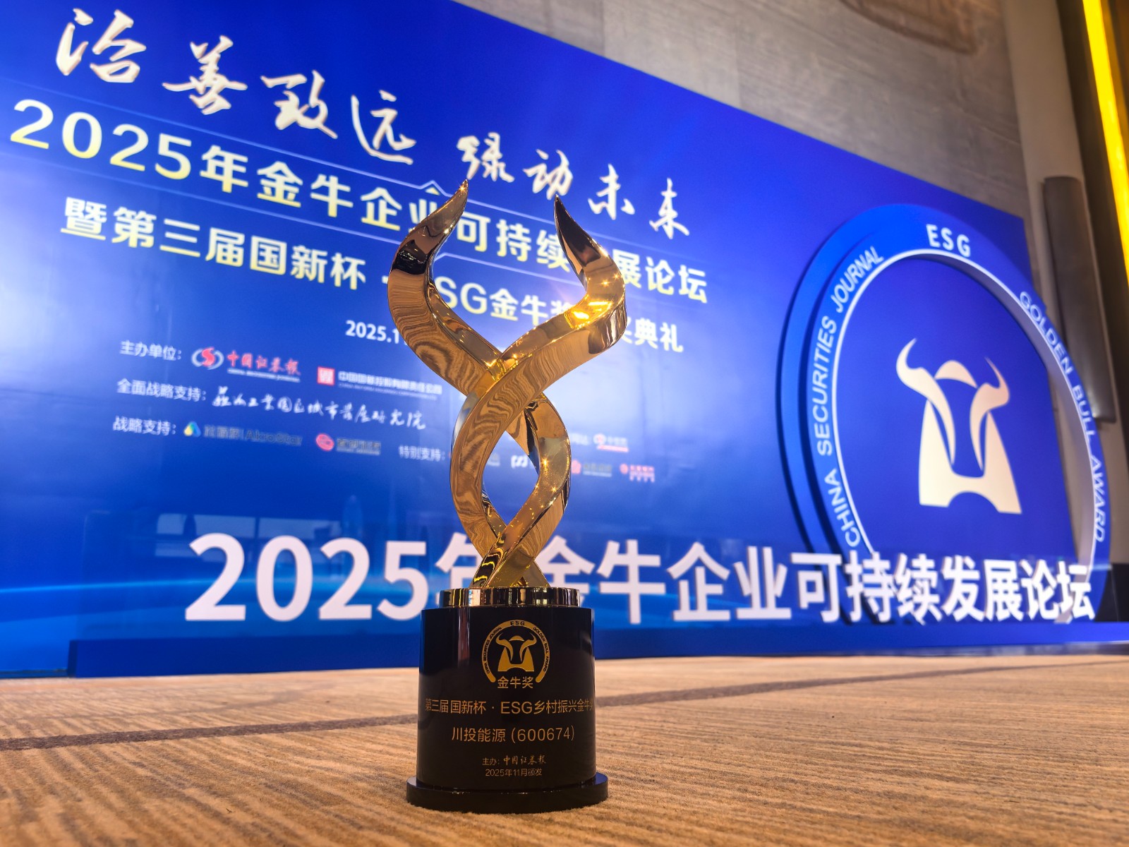 11月26日,由中國(guó)證券報(bào)主辦的2025年金牛企業(yè)可持續(xù)發(fā)展論壇暨第三屆國(guó)新杯·ESG金牛獎(jiǎng)?lì)C獎(jiǎng)典禮在蘇州舉行,川投能源憑借在可持續(xù)發(fā)展領(lǐng)域的卓越表現(xiàn),榮獲“鄉(xiāng)村振興金牛獎(jiǎng)”。