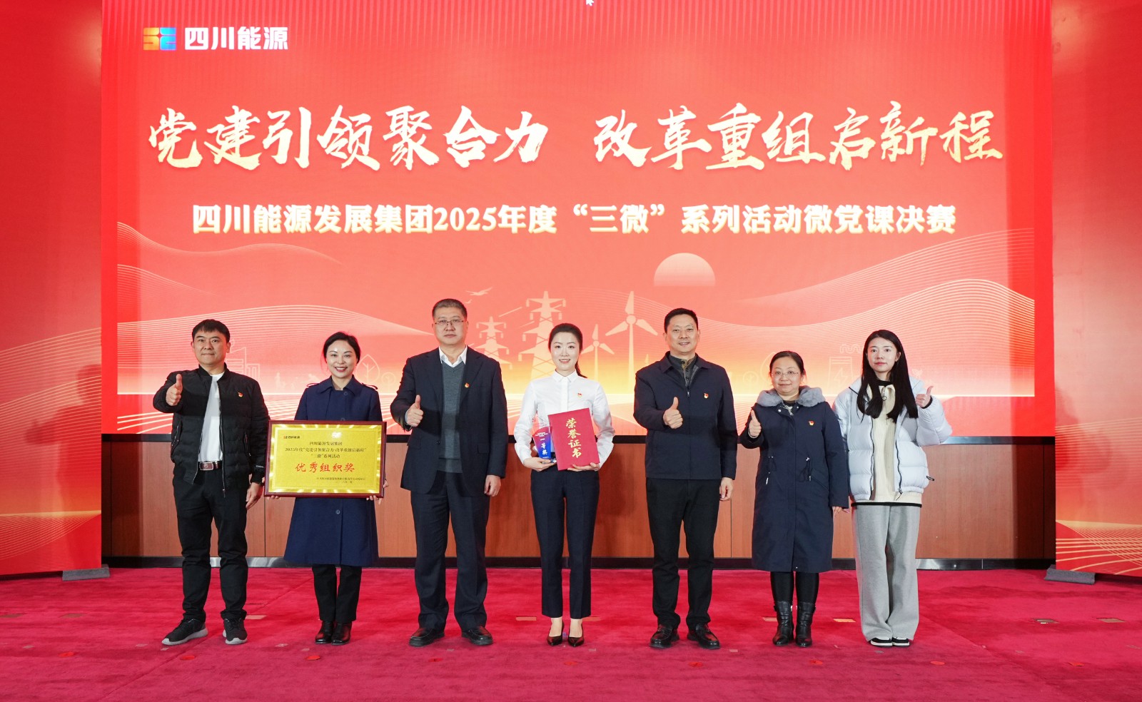 1月22日,四川能源發(fā)展集團(tuán)“黨建引領(lǐng)聚合力?改革重組啟新程”2025年度“三微”系列活動微黨課決賽,在集團(tuán)總部圓滿落幕。川投能源基層理論宣講“睿聲工作室”骨干成員,川投電力公司黨群工作部趙夢婷講授的微黨課《追光之路》,憑借深厚的情感、生動的敘事和鮮明的主題,以全場最高分?jǐn)孬@一等獎。此外,川投能源還包攬了本次微黨課決賽的優(yōu)秀組織獎。集團(tuán)公司黨委副書記、副董事長、總經(jīng)理鄧超為獲得一等獎的主講人頒獎,川投能源黨委書記、董事長劉勝金,黨委副書記、職工董事、工會主席冉蘭平現(xiàn)場觀看微黨課決賽。
