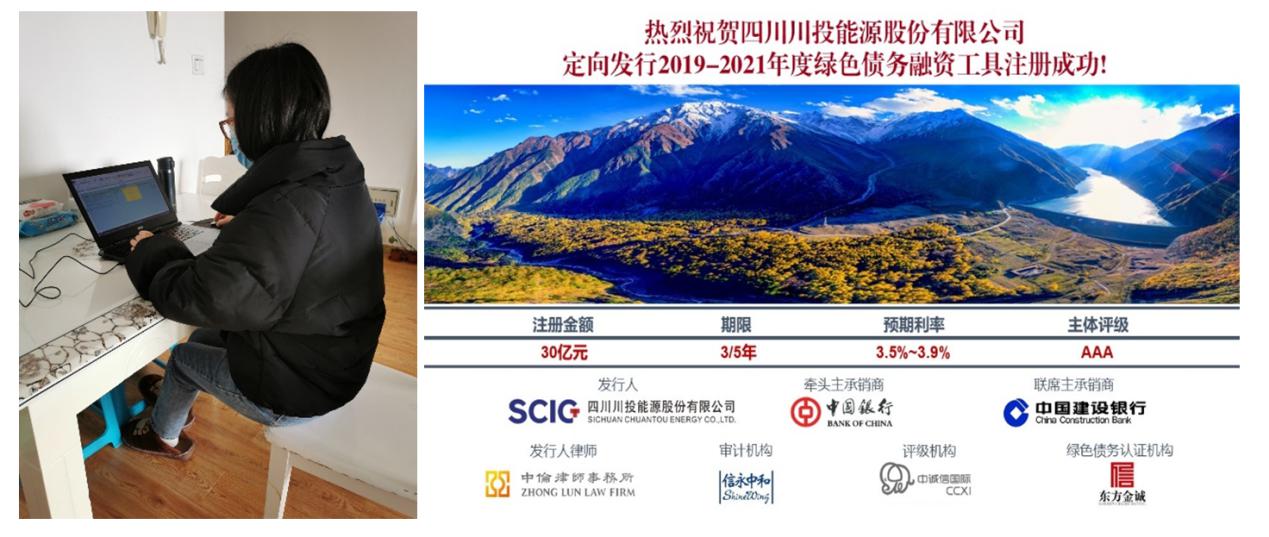 疫情期間,秦乙可需要每天不定時守在電腦前,沒有周內(nèi)周末之分,領(lǐng)導、同事、事務(wù)所、中介、銀行等等,什么時候需要資料、數(shù)據(jù),她便及時按要求提供。無論是私募債注冊資料提供,還是月度報表數(shù)據(jù)上報與財務(wù)分析,或者川投能源資金結(jié)算中心運營的推進、2019年度審計資料的提供,均通過遠程辦公方式順利完成。