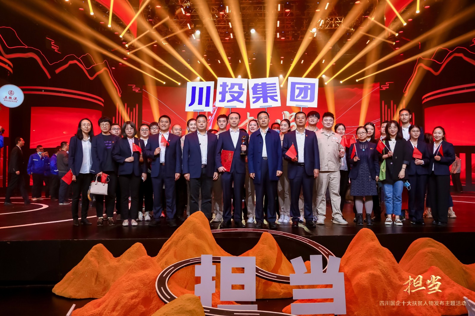 觀眾席上,28名川投能源員工手握國旗,整齊劃一地排座成一個醒目的企業(yè)方陣,在發(fā)布會場上,在脫貧攻堅的主戰(zhàn)場上,更在鄉(xiāng)村振興的新戰(zhàn)場上,高揚企業(yè)大旗、彰顯國企擔當?;顒咏Y束后,川投集團黨委副書記、董事鄧凱、黨群工作部部長張碧波同川投能源演職人員合影留念。
