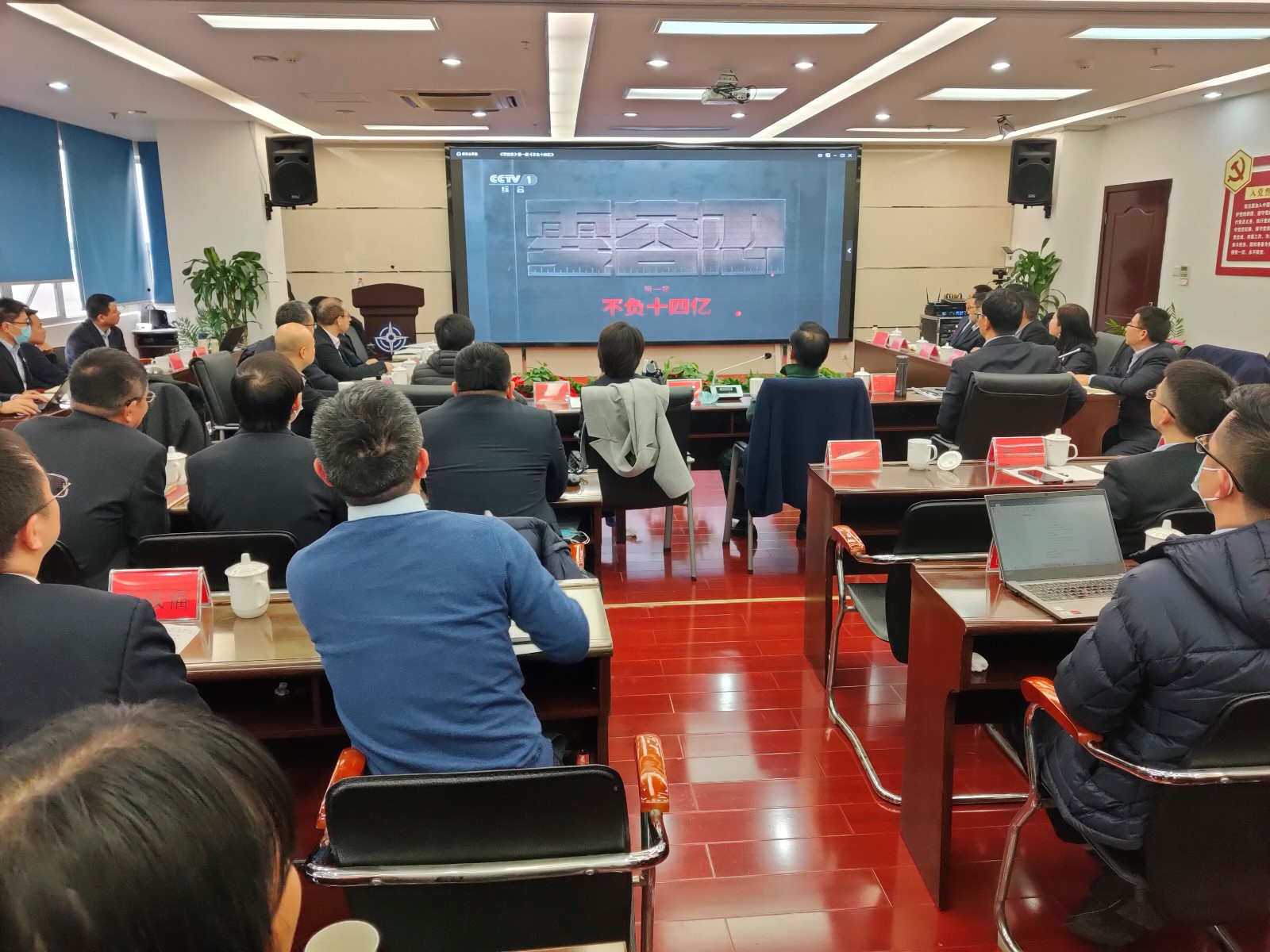 會后,參會人員觀看了中央紀委國家監(jiān)委宣傳部與中央廣播電視總臺聯(lián)合攝制的電視專題片《零容忍》第一集《不負十四億》,深刻感受黨直面病灶、刮骨療毒的勇氣和黨中央將反腐敗斗爭進行到底的堅定決心。