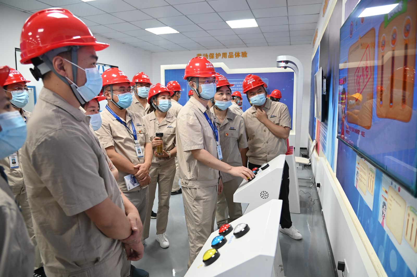 隨后,全體人員在公司安全體驗館進行了沉浸教學,該體驗館面積約700平方米,設有安全帶、有限空間、機械傷害、平衡木、護欄推倒、安全帽撞擊、高處墜落、觸電、滅火器使用、醫(yī)療急救、安全事故VR體驗等體驗項目,包含勞動防護用品穿戴及使用、安全標識及工程機械認知、風險辨識、安全知識和應急處置等教育培訓內(nèi)容。本次安全體驗教育培訓通過展板展示、實景模擬、案例警示、知識答題、親身體驗等方式,將施工現(xiàn)場常見的危險源、危險行為與事故類型具體化、實物化,充分展示工程建設需要學習掌握的安全知識和技能。