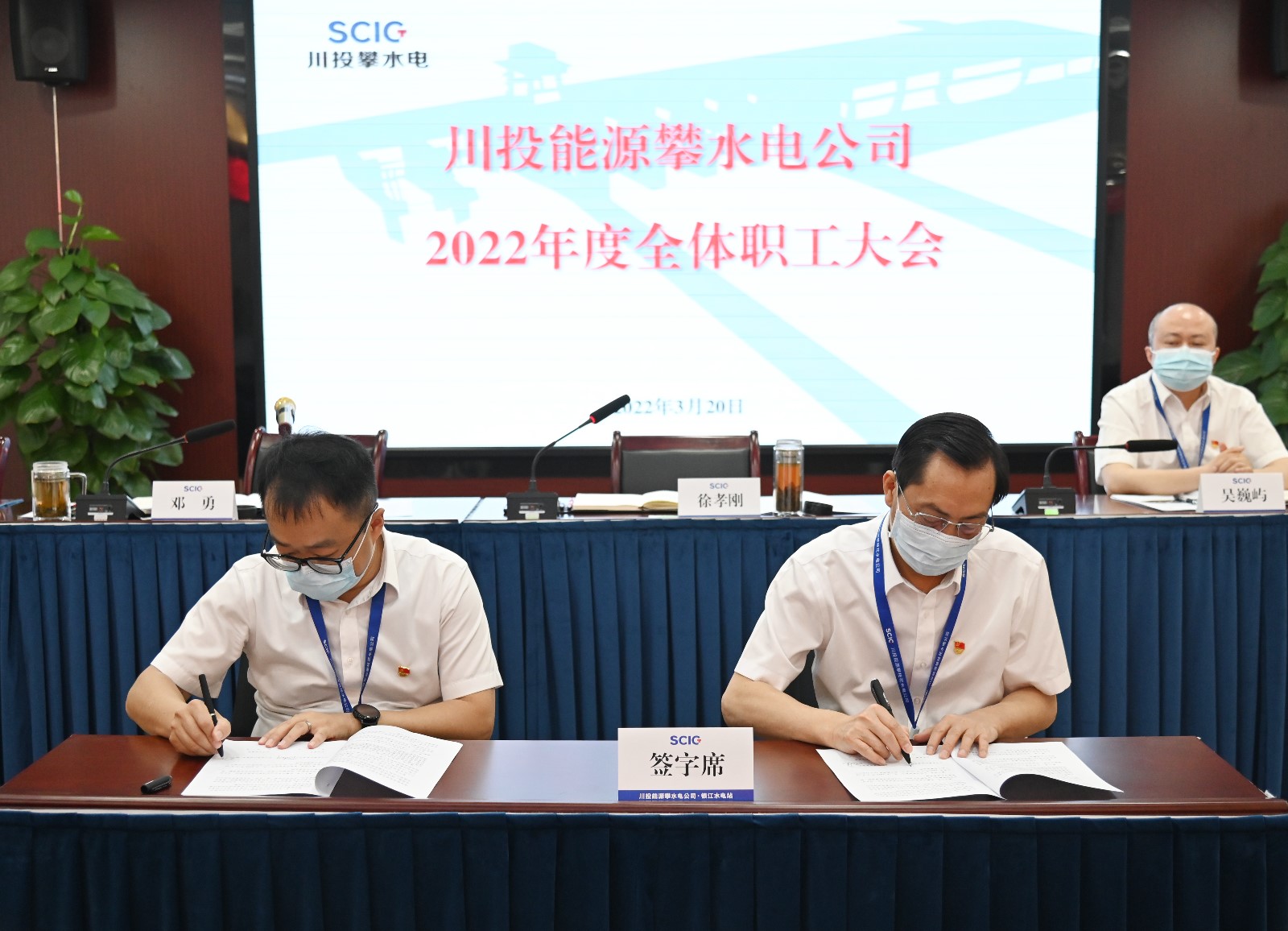 大會最后審議通過了《工資集體合同》和《女職工權(quán)益保護(hù)專項(xiàng)合同》,川投能源副總經(jīng)理、公司黨總支書記、董事長徐孝剛分別與工會主席鄧勇、女工委員高力梅簽署了上述集體合同,充分體現(xiàn)了公司高度重視員工福利和女職工切身利益,凝聚了人心,振奮了精神,鼓舞了士氣,堅(jiān)定了信念,為切實(shí)推動銀江水電站工程建設(shè)和公司高質(zhì)量發(fā)展貢獻(xiàn)了工會力量。