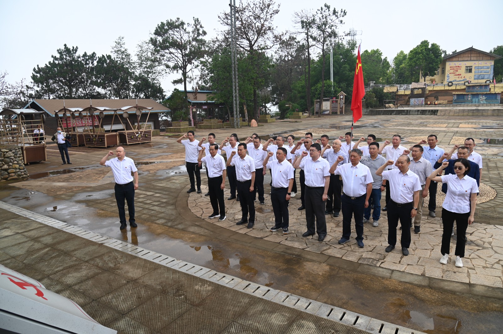 黨課結(jié)束后,在新山村村委會(huì)副主任張華美的帶領(lǐng)下,大家先后參觀了新山村傈僳族家風(fēng)棧道、文化廣場(chǎng)、文化展覽館以及家風(fēng)刺繡館,充分了解了傈僳族獨(dú)特的文化歷史與質(zhì)樸的“人生如織布,不能錯(cuò)一步”家風(fēng)傳承。在文化廣場(chǎng)漢、傈雙語(yǔ)入黨誓詞雕塑前,公司黨總支委員、總經(jīng)理吳巍嶼帶領(lǐng)全體黨員一起重溫了入黨誓詞,激勵(lì)提醒全體黨員不忘初心、牢記使命,始終堅(jiān)定自己的理想信念,進(jìn)一步加強(qiáng)自身黨性修養(yǎng)。