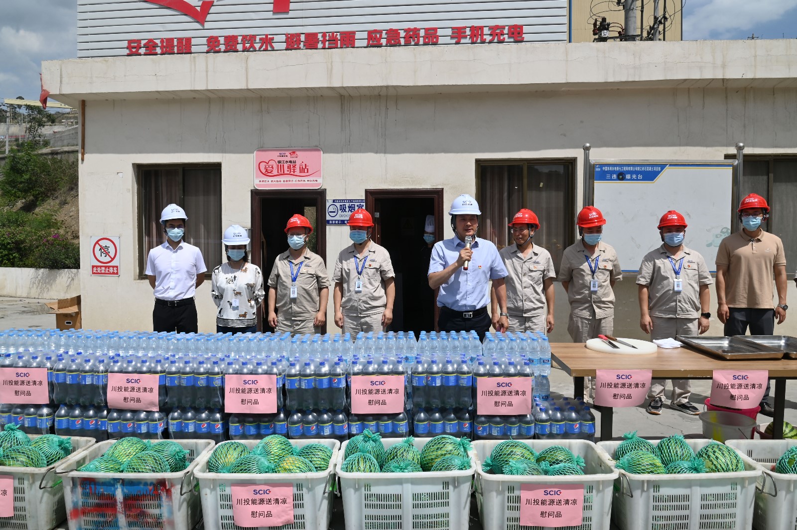 夏至剛過,高溫來襲,攀枝花已進(jìn)入了高溫酷暑季節(jié)。6月22日下午,為落實全國總工會《關(guān)于做好2022年職工防暑降溫工作的通知》要求,受川投能源黨委書記、副董事長、總經(jīng)理楊洪的委托,川投能源黨委副書記、工會主席冉蘭平一行頂著烈日高溫,專程到銀江水電站工地看望慰問堅守在高溫酷暑中的一線建設(shè)者。川投能源人力資源部經(jīng)理王歆、紀(jì)檢工作部陳一鳴及攀水電公司領(lǐng)導(dǎo)、志愿者服務(wù)隊參加慰問。