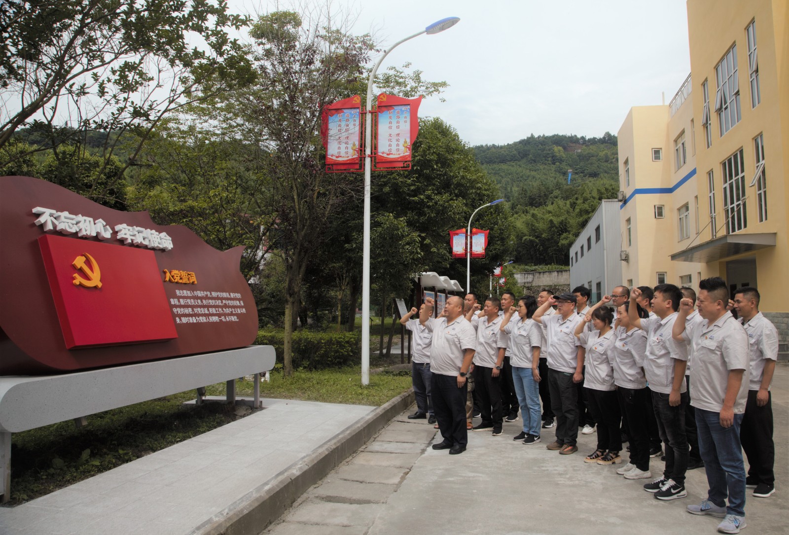 “我志愿加入中國(guó)共產(chǎn)黨,擁護(hù)黨的綱領(lǐng)……”在公司黨建文化陣地入黨誓詞區(qū),為重溫黨的光輝歷程,進(jìn)一步增強(qiáng)黨員的榮譽(yù)感、責(zé)任感和使命感,在陳忠的領(lǐng)誓下,與會(huì)黨員面對(duì)鮮紅黨旗高舉右拳重溫入黨誓詞,鏗鏘宏亮的聲音表達(dá)了黨員的莊嚴(yán)承諾和奮斗決心。