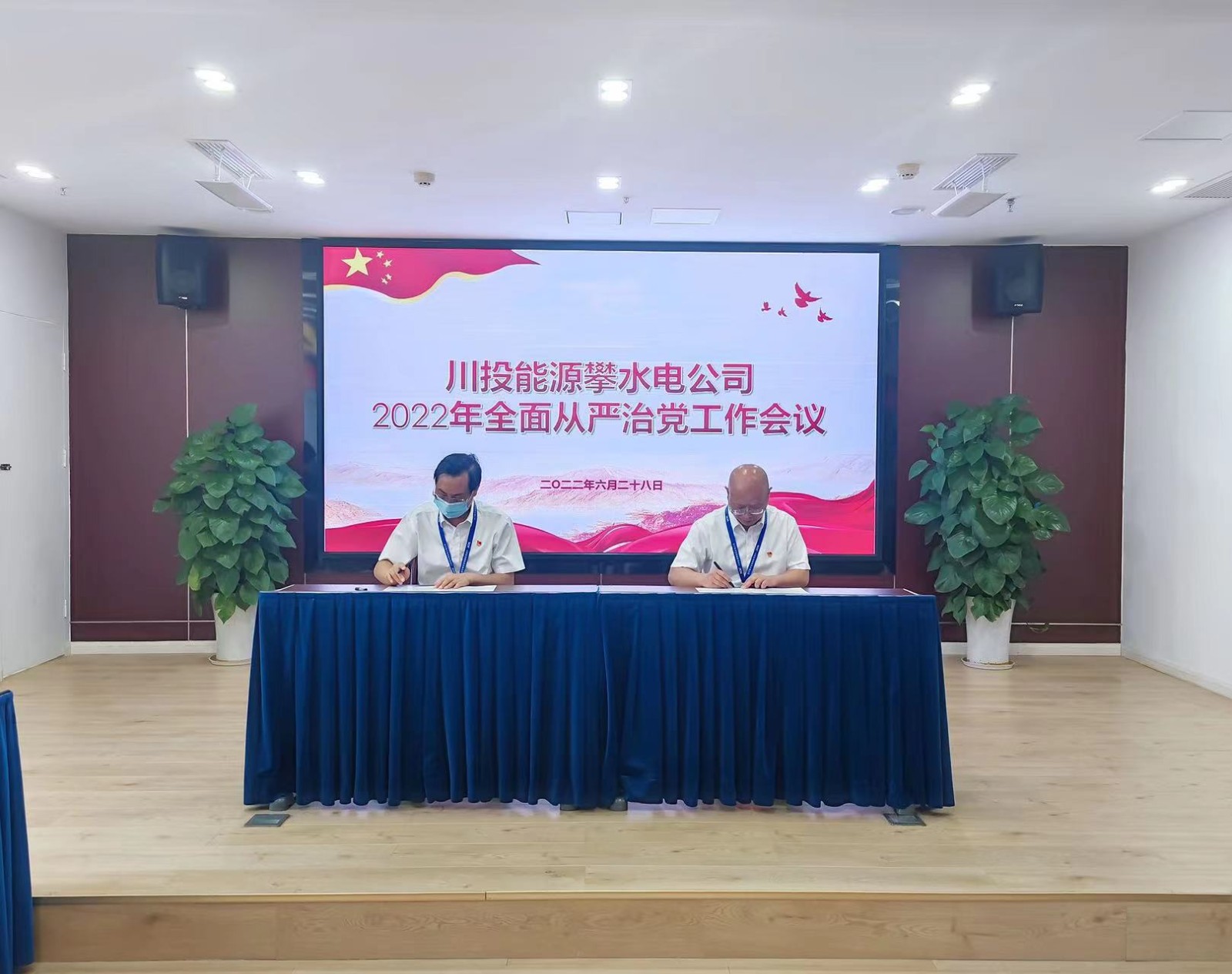 會議首先由黨總支委員、董事會秘書、工會主席鄧勇傳達(dá)學(xué)習(xí)了川投能源黨委書記、副董事長、總經(jīng)理?xiàng)詈樵诖ㄍ赌茉?022年加強(qiáng)黨的領(lǐng)導(dǎo)、全面從嚴(yán)治黨工作會上的講話,楊銳匯報(bào)了2022年上半年紀(jì)檢工作總結(jié)及下半年工作打算,公司黨總支委員/領(lǐng)導(dǎo)班子成員匯報(bào)了半年來“一崗雙責(zé)”履責(zé)情況,川投能源副總經(jīng)理、攀水電公司黨總支書記、董事長徐孝剛與領(lǐng)導(dǎo)班子成員代表財(cái)務(wù)總監(jiān)王俊森現(xiàn)場簽訂了《黨風(fēng)廉政建設(shè)責(zé)任書》。