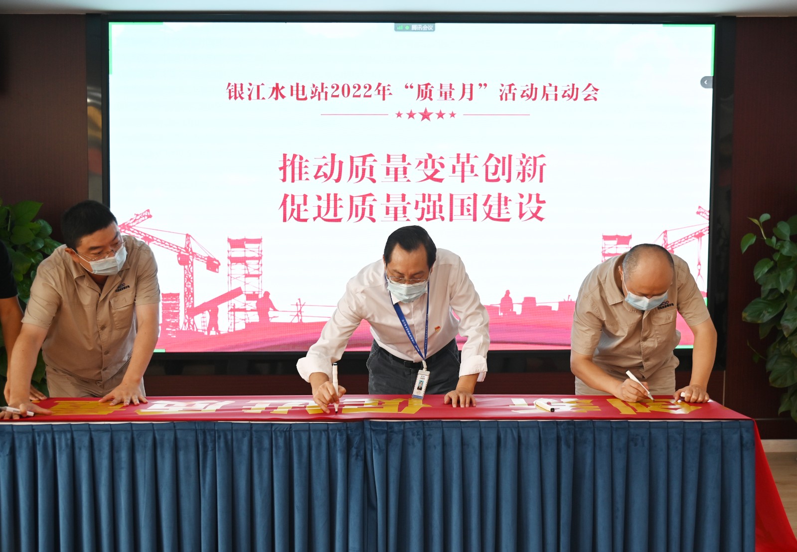 會上,公司組織學(xué)習(xí)了國家市場監(jiān)管總局等21個部門聯(lián)合印發(fā)的《關(guān)于開展2022年全國“質(zhì)量月”活動的通知》,宣讀了公司《關(guān)于開展銀江水電站2022年“質(zhì)量月”活動的通知》,各參建單位匯報了各自“質(zhì)量月”活動方案,提出了與公司活動方案相結(jié)合的具體措施。
