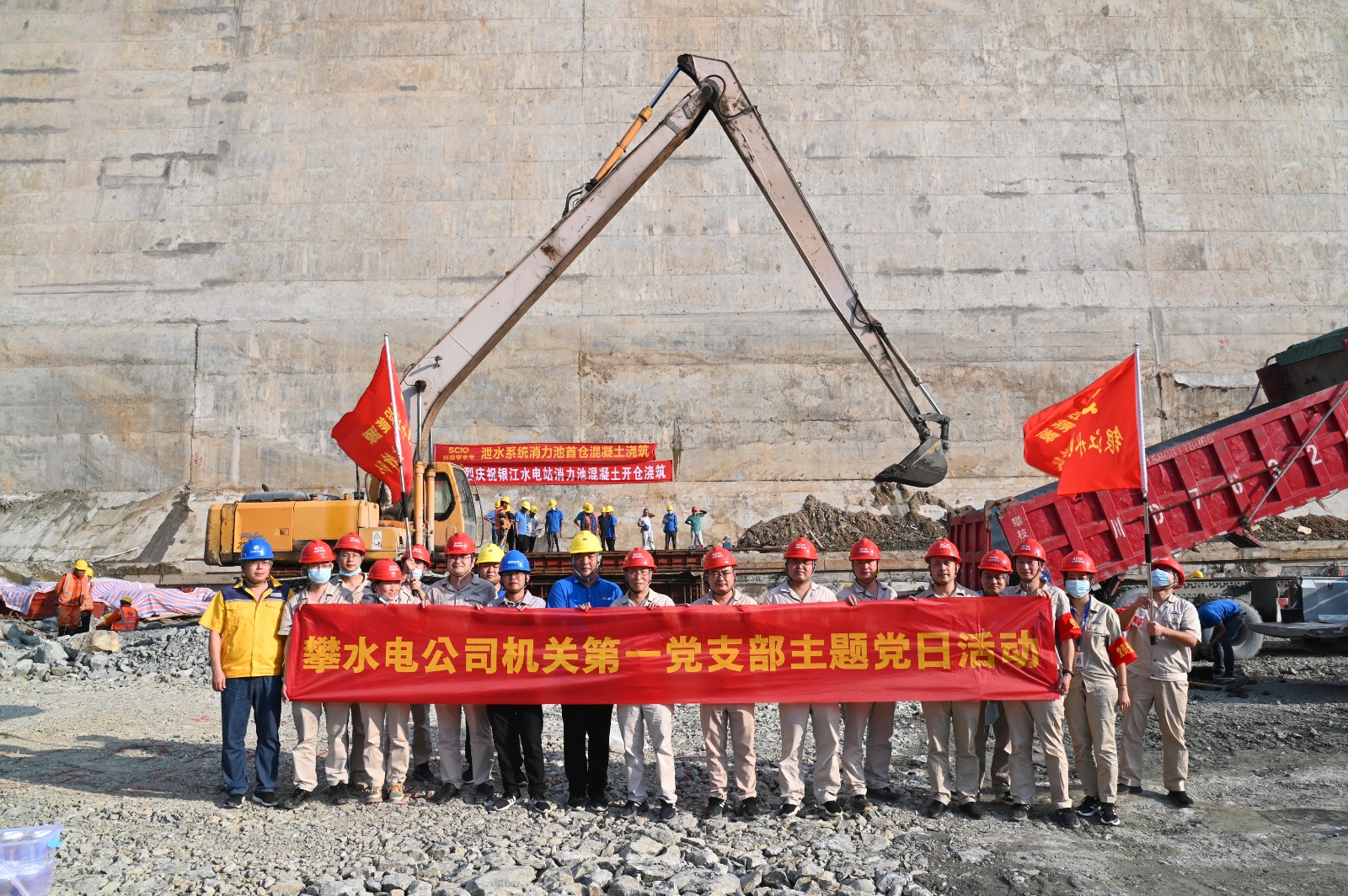 按照銀江水電站“決戰(zhàn)四季度、大干一百天”活動安排,計劃于9月29日下午開始主體工程泄水系統(tǒng)消力池首倉混凝土澆筑。為服務該項重要節(jié)點目標的順利實現(xiàn),9月29日,由機關第一黨支部牽頭,邀請聯(lián)建支部部分黨員,到銀江水電站施工現(xiàn)場,開展了主題為“服務消力池首倉混凝土澆筑,在決戰(zhàn)100天活動中貢獻支部力量,以實際行動喜迎二十大”的主題黨日活動。