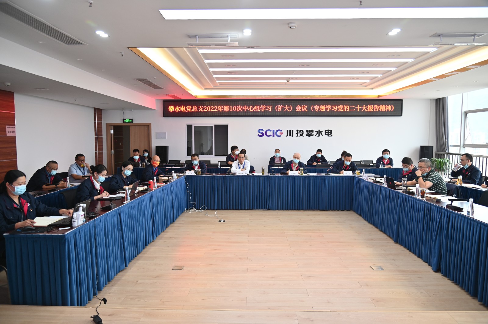 10月22日上午,在黨的二十大勝利閉幕之際,攀水電公司黨總支在2620會議室召開了2022年第10次中心組(擴(kuò)大)學(xué)習(xí)會議,專題學(xué)習(xí)習(xí)近平總書記在中國共產(chǎn)黨第二十次全國代表大會上的報告。會議由川投能源副總經(jīng)理、攀水電公司黨總支書記、董事長、攀新能源公司董事長徐孝剛主持,公司黨總支中心組成員、聯(lián)建支部書記、其他黨員、統(tǒng)戰(zhàn)對象、入黨積極分子共40余人參加學(xué)習(xí)。