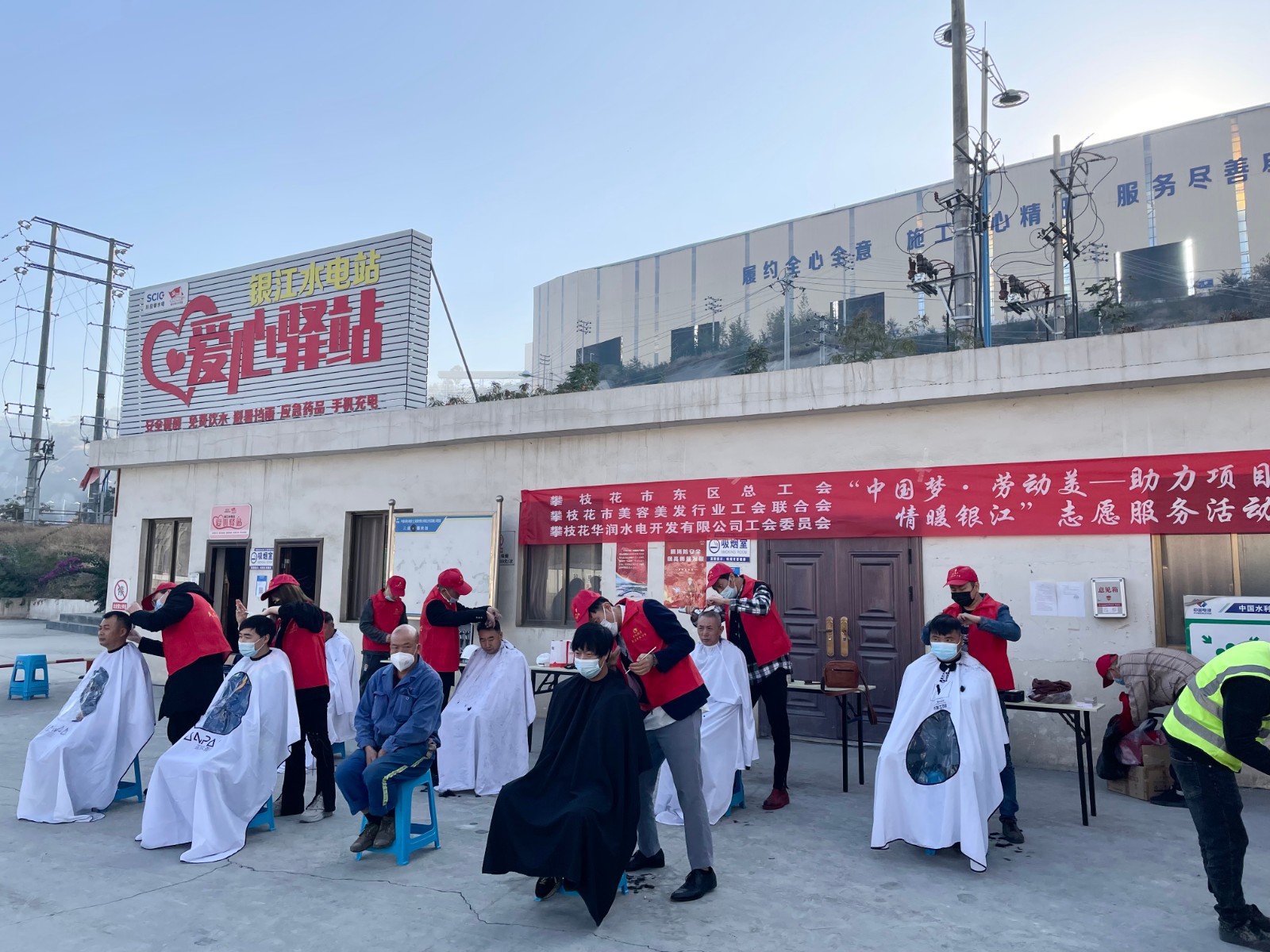 為落實(shí)四川省總工會關(guān)于《學(xué)習(xí)宣傳貫徹黨的二十大精神》文件要求,各級工會要把黨的二十大精神貫徹落實(shí)到工會工作的各方面。11月28日上午,由攀枝花市東區(qū)總工會主辦、攀水電公司工會承辦、攀枝花市美容美發(fā)行業(yè)工會聯(lián)合會協(xié)辦的“中國夢·勞動美—助力項(xiàng)目攻堅(jiān) 情暖銀江”志愿服務(wù)活動在銀江水電站愛心驛站開展。本次活動是由攀枝花市美容美發(fā)行業(yè)工會聯(lián)合會的理發(fā)師為一線工友開展的“愛心義剪”。按疫情防控要求,公司工會提前對長江設(shè)計(jì)公司、貴陽院監(jiān)理部、二灘建設(shè)監(jiān)理部、華東院監(jiān)理部、水電五局項(xiàng)目部、水電七局項(xiàng)目部、水電十局項(xiàng)目部、四川路橋項(xiàng)目部、試驗(yàn)監(jiān)測中心等參建單位進(jìn)行宣傳并報(bào)名登記,分批組織人員理發(fā),避免了人員聚集,確保了活動有序開展。