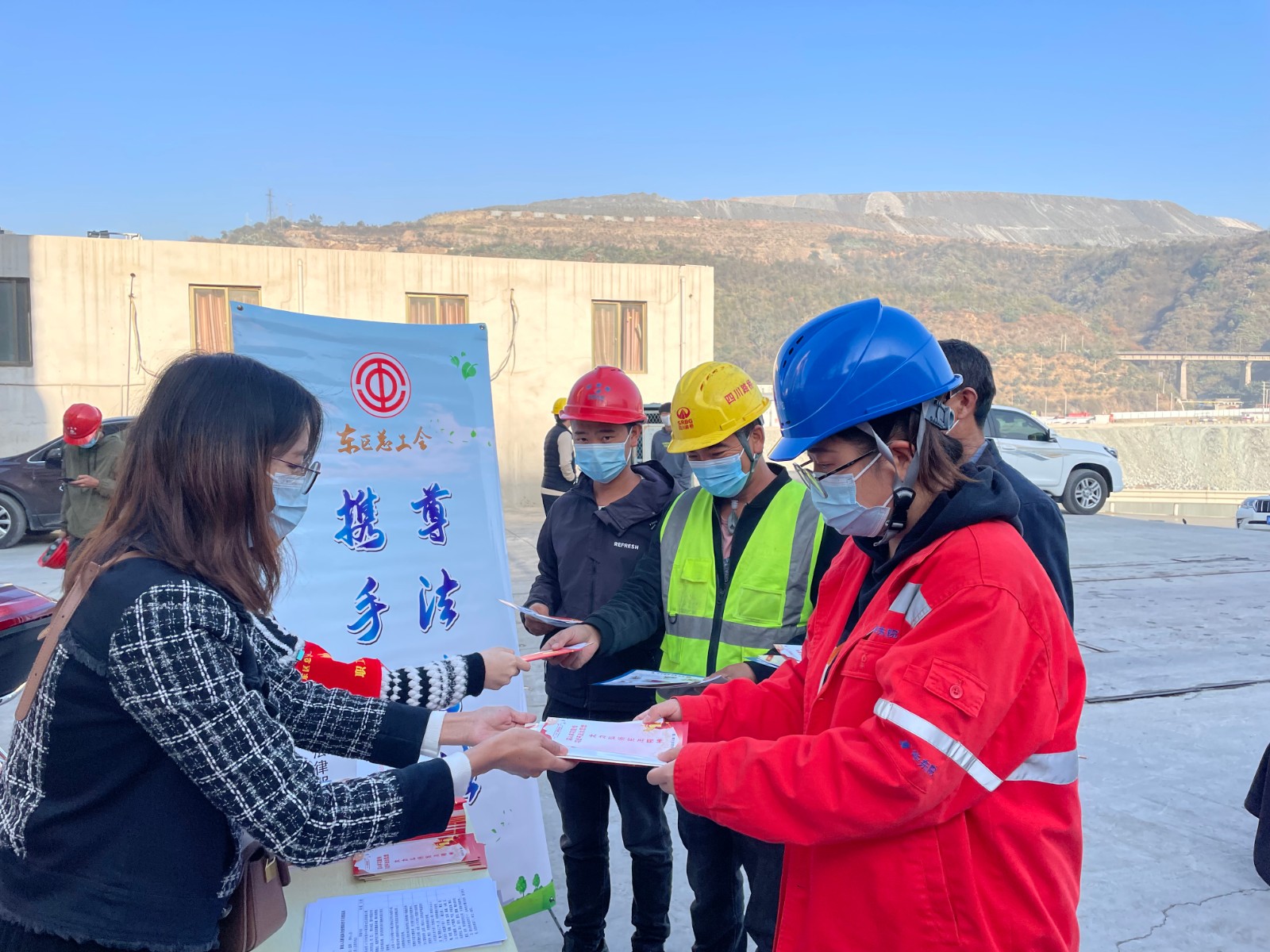 活動現(xiàn)場東區(qū)總工會工作人員為一線工友發(fā)放了《中華人民共和國工會法》《中華人民共和國憲法》《安全生產(chǎn)和職業(yè)健康知識職工普及讀本》及東區(qū)總工會印制的《深入學(xué)習(xí)宣傳習(xí)近平法治思想,大力弘揚(yáng)憲法精神》等相關(guān)法律法規(guī)宣傳資料,并進(jìn)行現(xiàn)場咨詢解答疑難提問,從而引導(dǎo)一線職工學(xué)習(xí)了解法律知識。