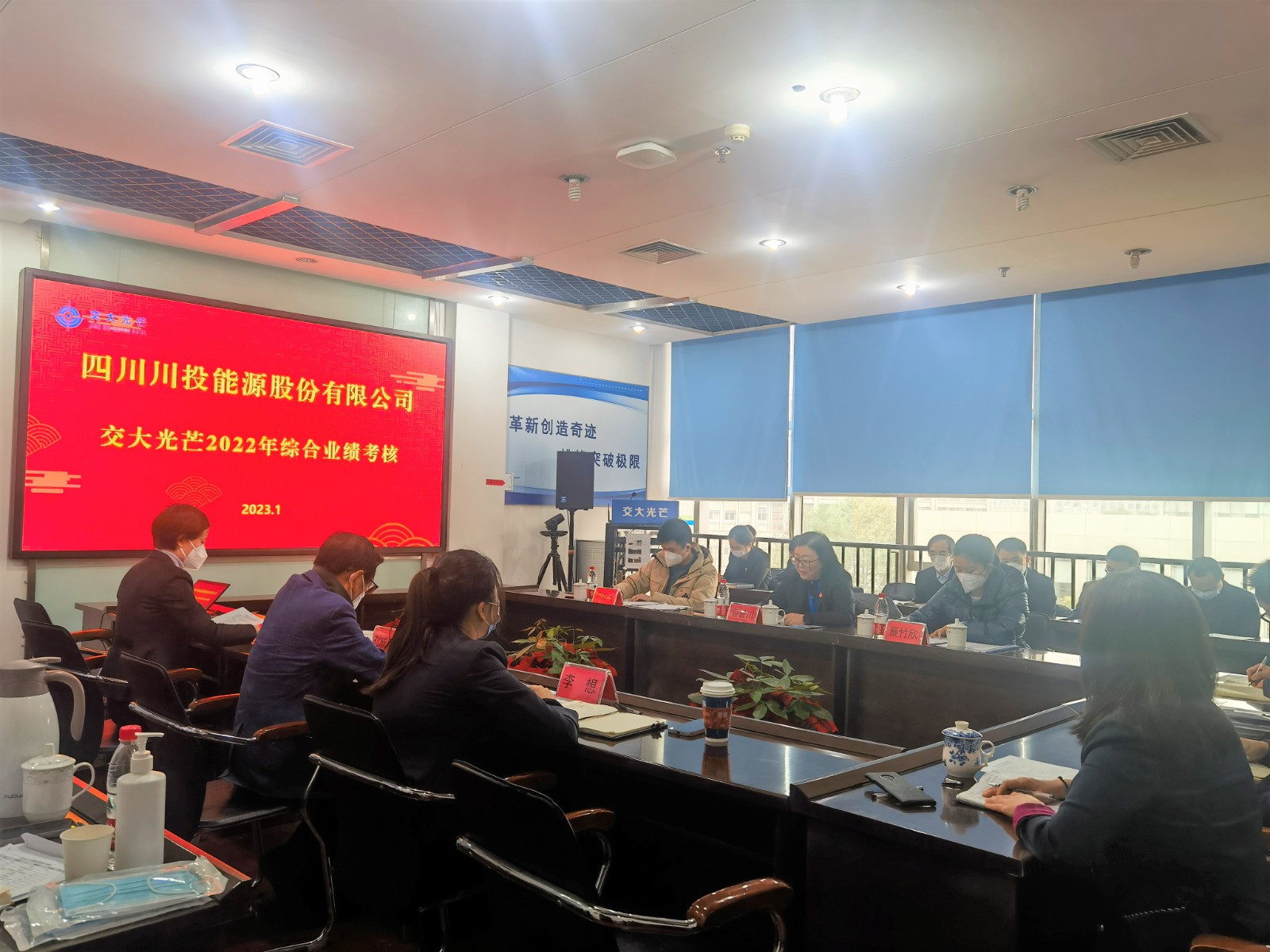 根據(jù)川投能源考核工作的統(tǒng)一部署,1月11日,川投能源考核組長(zhǎng)、董事會(huì)秘書(shū)魯晉川率隊(duì)赴交大光芒開(kāi)展2022年度綜合業(yè)績(jī)考核工作,通過(guò)聽(tīng)取述職述責(zé)述廉報(bào)告、民主測(cè)評(píng)、個(gè)別談話和現(xiàn)場(chǎng)實(shí)地察看核實(shí)等環(huán)節(jié),對(duì)交大光芒進(jìn)行了全面考核。魯晉川主持召開(kāi)此次考評(píng)會(huì),交大光芒經(jīng)營(yíng)班子、中層副職以上管理人員及一線員工代表參加。