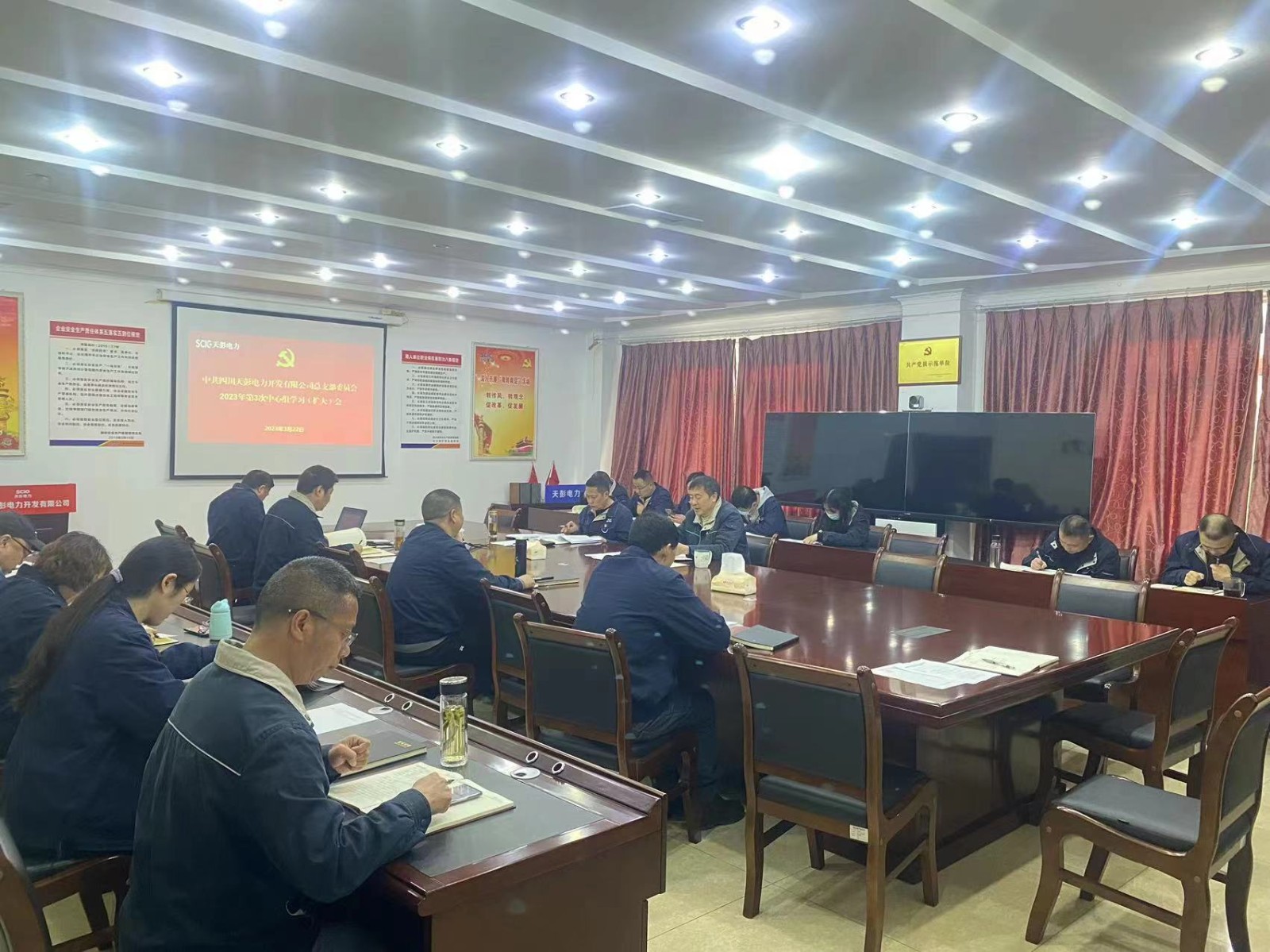 3月22日上午,川投電力黨委所屬天彭電力黨總支召開2023年第3次黨總支理論中心組學習會,專題學習研討全國兩會精神。公司領(lǐng)導(dǎo)、黨員干部、關(guān)鍵崗位人員參加會議,會議由公司黨總支書記、總經(jīng)理劉紅兵主持。