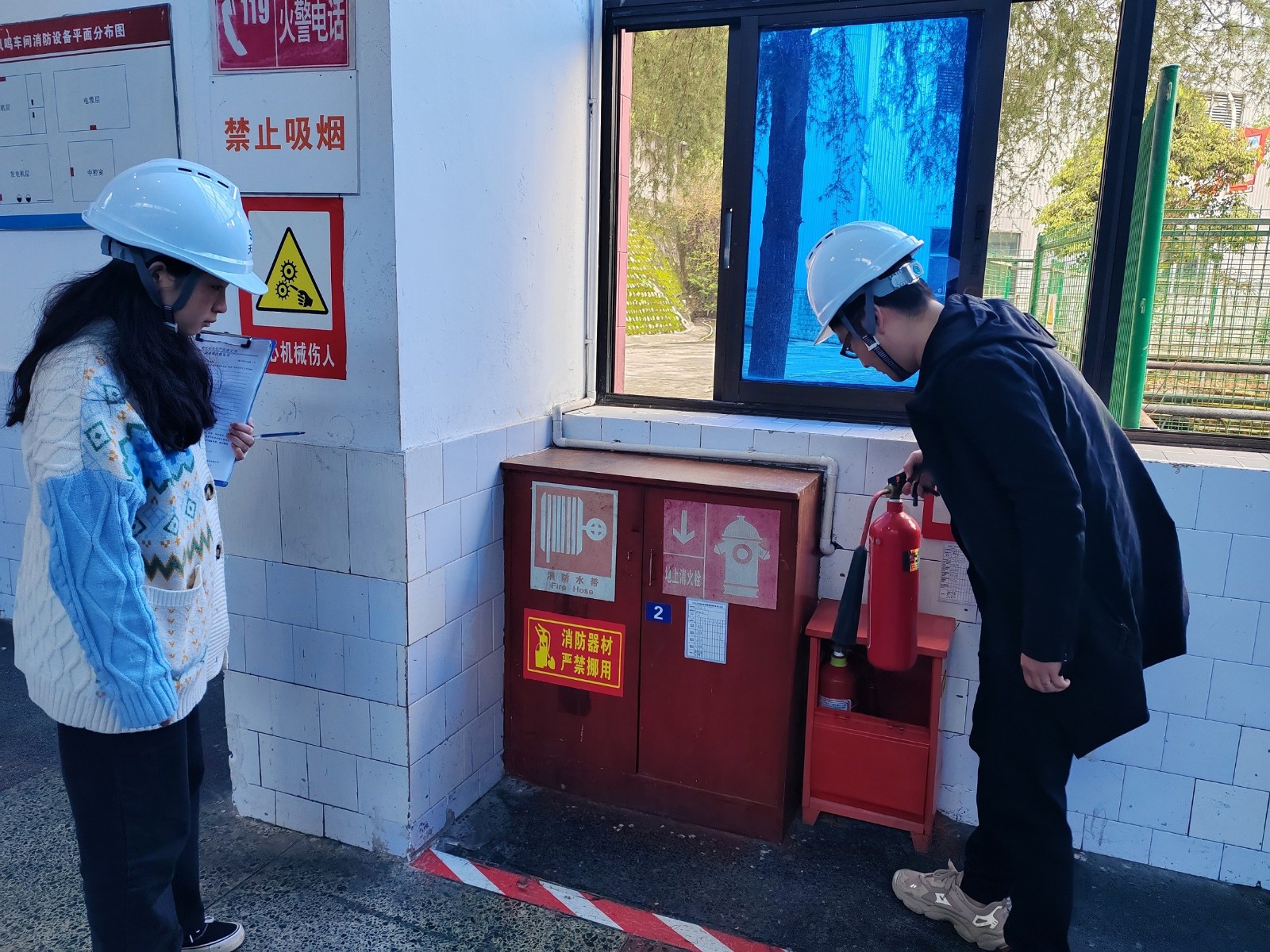 在公司鳳鳴橋車間生產(chǎn)現(xiàn)場,檢查組一行采取一看、二問、三查的形式,重點(diǎn)檢查了現(xiàn)場消防安全設(shè)施和器材是否規(guī)范設(shè)置,是否完好可用且在有效期內(nèi),臨時(shí)用電是否存在亂拉亂接現(xiàn)象,消防通道設(shè)置及管控是否符合消防安全規(guī)定等。隨后,檢查組逐一查閱了公司消防安全管理制度建設(shè)、火災(zāi)風(fēng)險(xiǎn)辨識防范、隱患排查整治、消防安全應(yīng)急疏散救援預(yù)案及員工培訓(xùn)、演練等記錄資料。