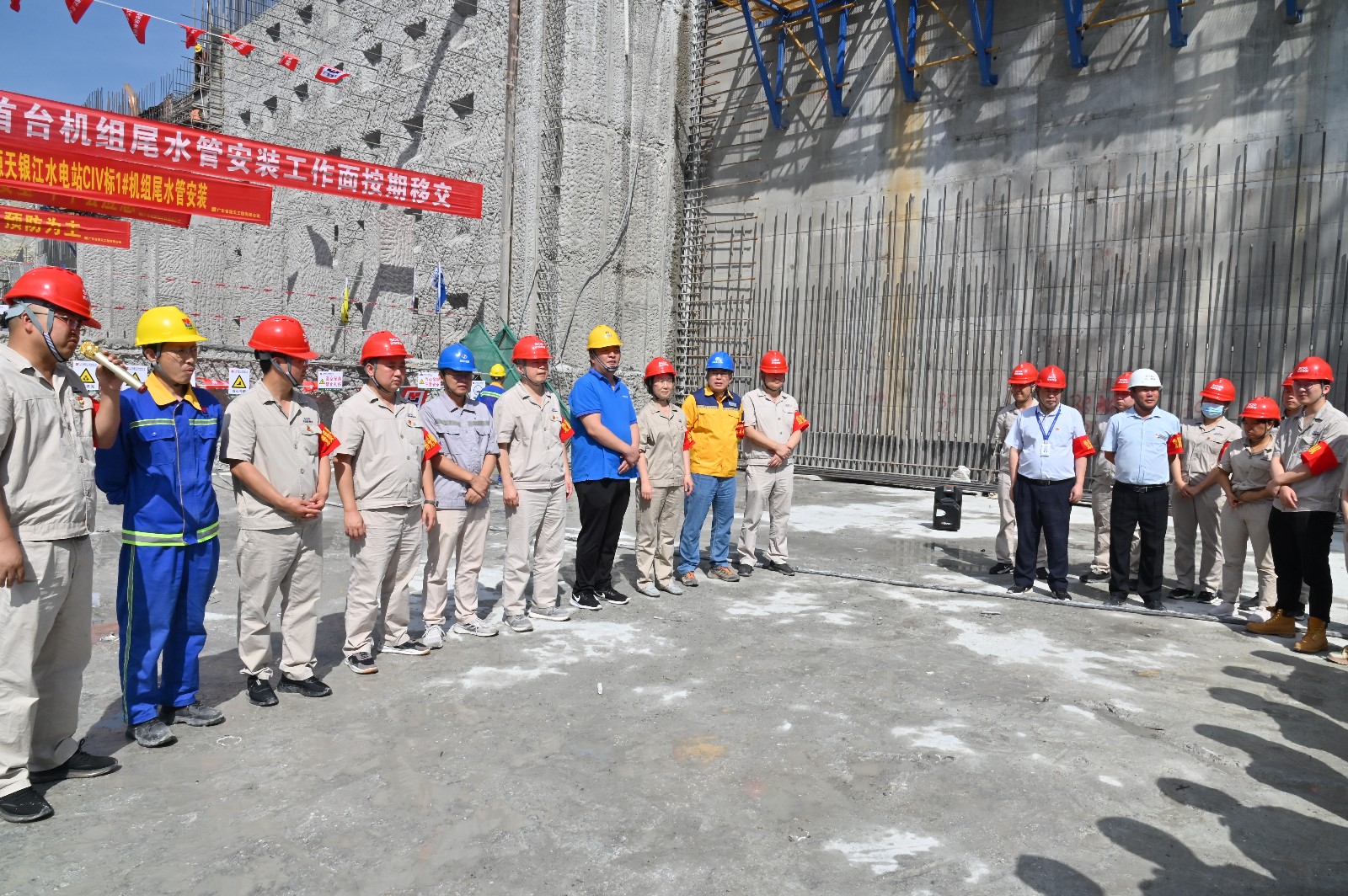 為全力保障2023年各項進度目標順利實現(xiàn),公司團結帶領各參建單位及哈電廠家群策群力、攻堅克難,認真落實各項工作。成立工作推進指揮部和六個工作小組,由公司班子成員牽頭,公司相關部門、各聯(lián)建支部、各參建單位人員參加,緊盯責任分區(qū),狠抓工作落實,確保各部位施工能順利推進,確保物資設備能按時保供。認真梳理工程重難點,優(yōu)化施工工藝,每日召開工地協(xié)調會,將工作任務落實到每日計劃中。堅持現(xiàn)場聯(lián)合辦公,從施工組織、人員投入、機具配置、施工方案等方面著手,分析存在的問題并及時協(xié)調解決,施工進度處于可控狀態(tài)。加強現(xiàn)場管理,每日深入現(xiàn)場檢查,第一時間掌握安全、質量等方面情況,發(fā)現(xiàn)問題及時督促整改,做到“重安全、保質量、抓進度”三管齊下。同時,合理調整作業(yè)時間,當前攀枝花天氣炎熱,白天室外溫度高達三十多度,施工作業(yè)人員極易中暑,公司將作業(yè)時間調整為7:00-11:30、15:00-20:00,并做好“送清涼”活動,保障全員以最佳狀態(tài)作業(yè)施工,推進工程建設。