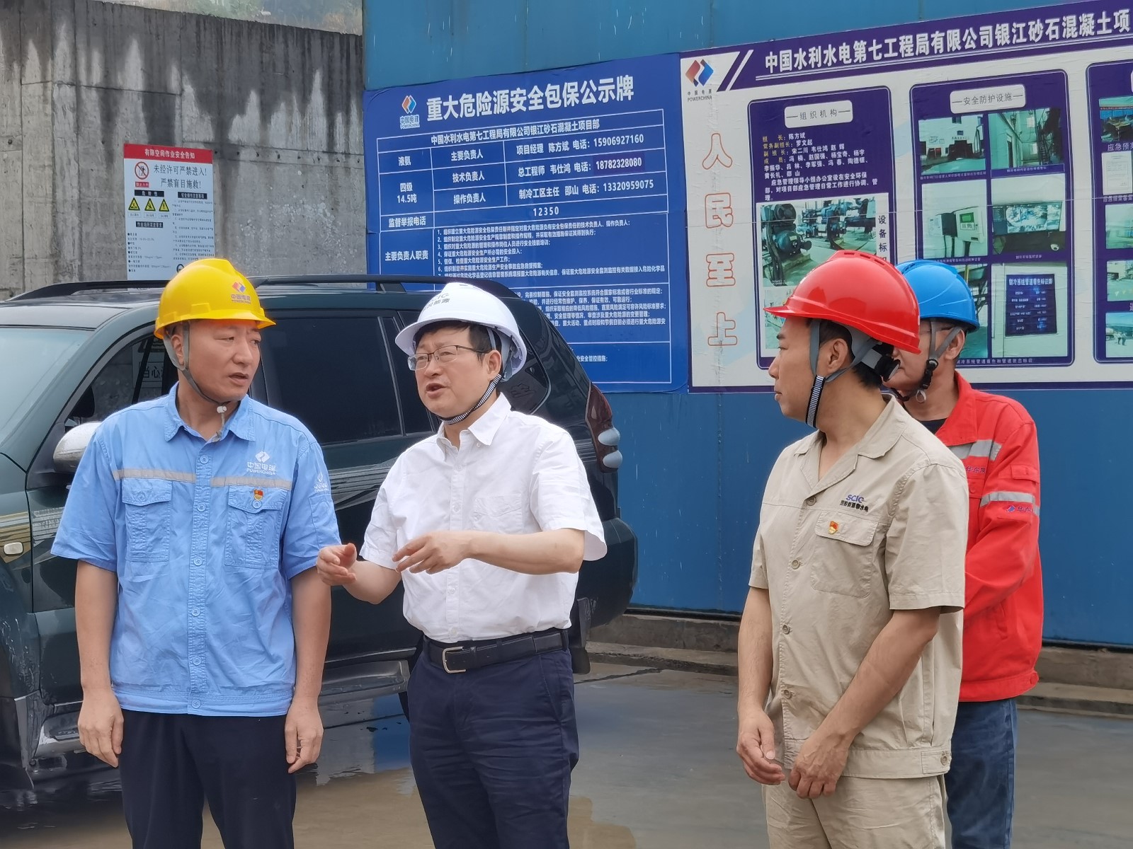 楊平一行深入銀江水電站施工現(xiàn)場(chǎng),查看安全風(fēng)險(xiǎn)管控情況,了解工程建設(shè)及安全生產(chǎn)情況,結(jié)合安全生產(chǎn)強(qiáng)化年、重大事故隱患專項(xiàng)排查整治、防汛減災(zāi)等工作,對(duì)現(xiàn)場(chǎng)液氨制冷系統(tǒng)等重點(diǎn)部位、重點(diǎn)設(shè)備、施工作業(yè)面的安全措施落實(shí)情況開(kāi)展督導(dǎo)檢查。