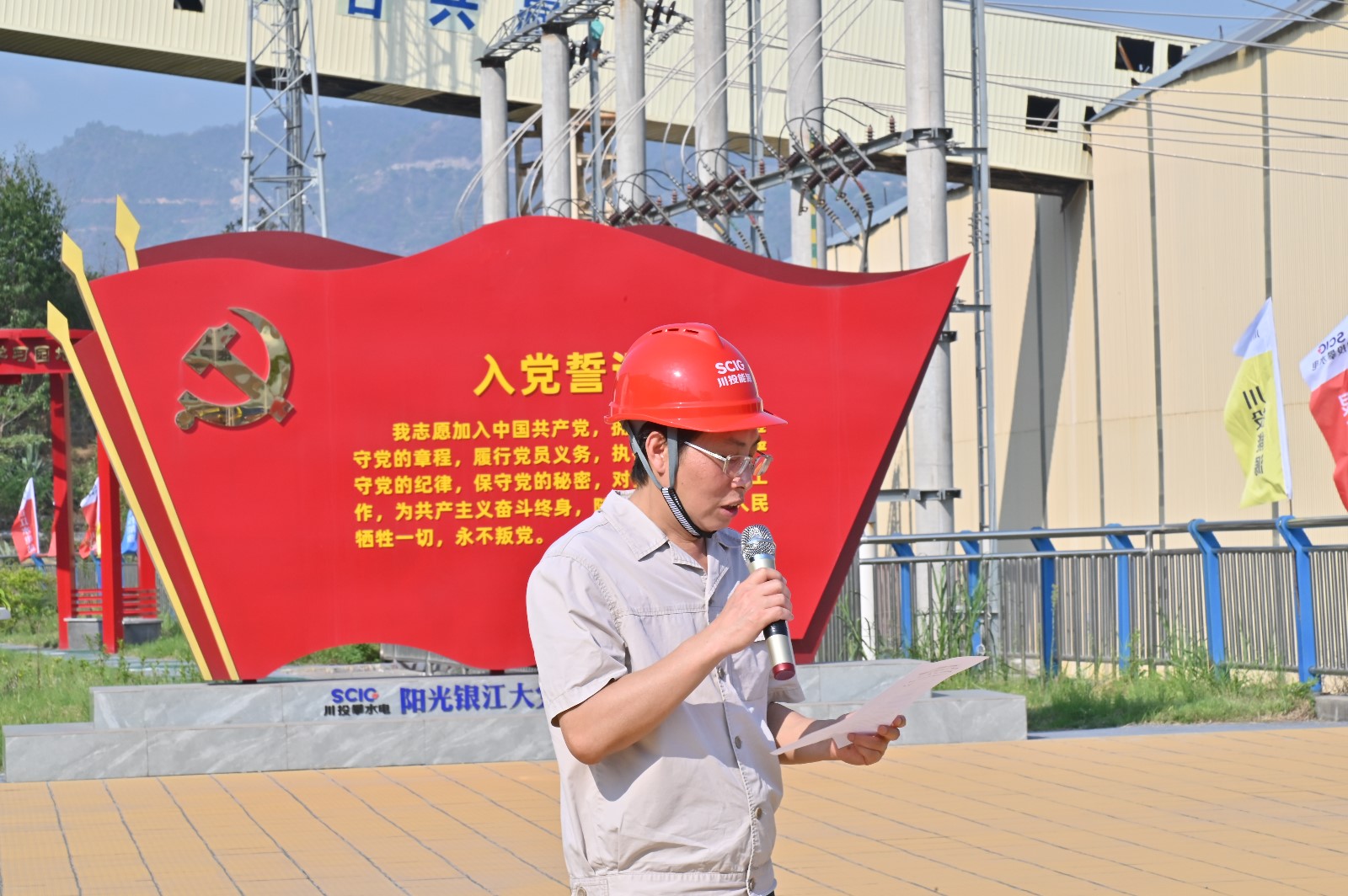 工地現(xiàn)場,在烈日的“考驗”下,川投能源副總經理,攀水電公司黨總支書記、董事長徐孝剛作動員講話。他講到,黨的二十大明確提出:要在全社會弘揚勞動精神、奮斗精神、奉獻精神,培育時代新風新貌。在黨102歲生日之際,今天我們團結在一起,開展主題黨日活動,傳承黨自力更生、艱苦創(chuàng)業(yè)的紅色基因,弘揚團結協(xié)作、無私奉獻的政治品格,建設綠色環(huán)保銀江,共建和諧文明工地;希望大家發(fā)揚不怕累、不怕臟、不怕苦的勞動精神,用勤勞的雙手,打造美麗銀江,展現(xiàn)“顏值擔當”。