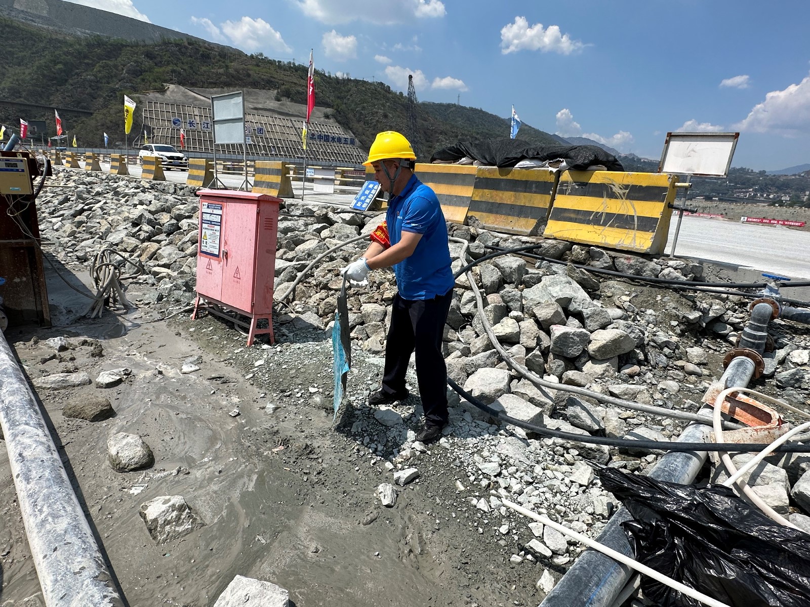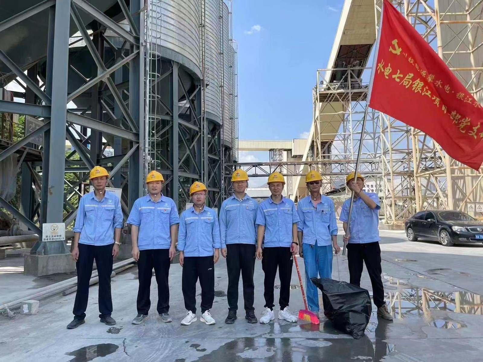 工程管理部給大家分配了“責任田”,按照施工區(qū)、公共區(qū)分成6個小組,機關一、二支部分別負責上、下游圍堰,設計監(jiān)理、檢測監(jiān)測、服務保障三個聯(lián)合黨支部負責進場道路,水電五局項目部、水電七局項目部、廣東源天項目部三個臨時黨支部負責各自施工區(qū)域。各支部全體黨員、職工積極參與,充分發(fā)揮“特別能吃苦,特別能奉獻的銀江精神”,齊心協(xié)力創(chuàng)設文明工地,分別清掃施工區(qū)域的白色垃圾、煙頭,規(guī)整施工物資堆放。清理過程中,各小組分工明確,你清掃、我裝袋,你撿垃圾、我搬材料。汗水濕透了衣背,灰塵沾滿了手腳,然而整個清理過程,沒有人抱怨,沒有人嫌累,沒有人偷懶,充分展現(xiàn)了銀江建設者們昂揚奮進的工作狀態(tài)。