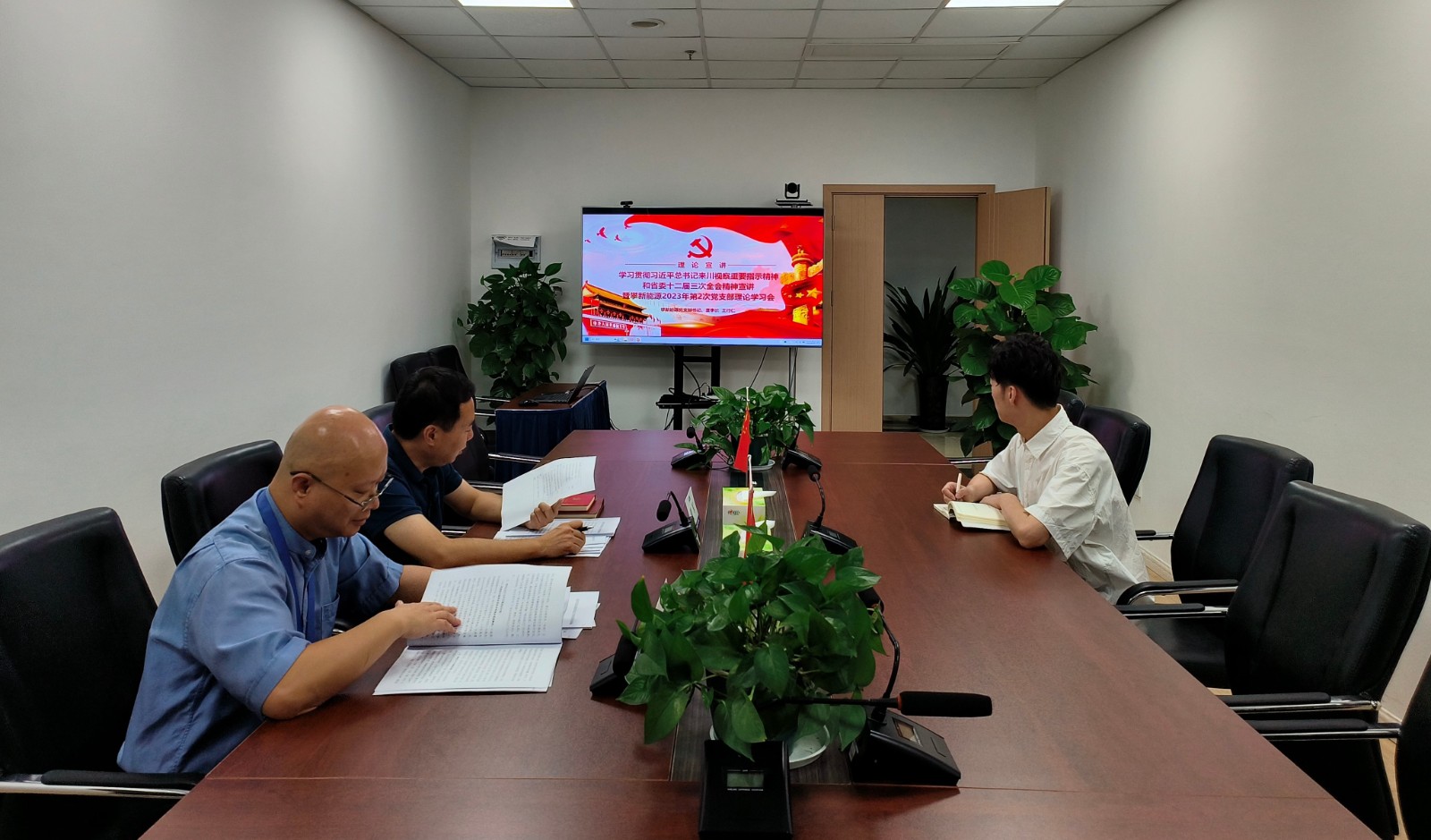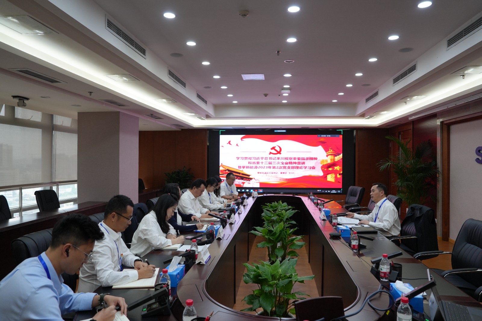 攀新能源領(lǐng)導(dǎo)班子成員及全體員工參加專題宣講,公司全體黨員參加黨支部理論學(xué)習(xí)會(huì)。