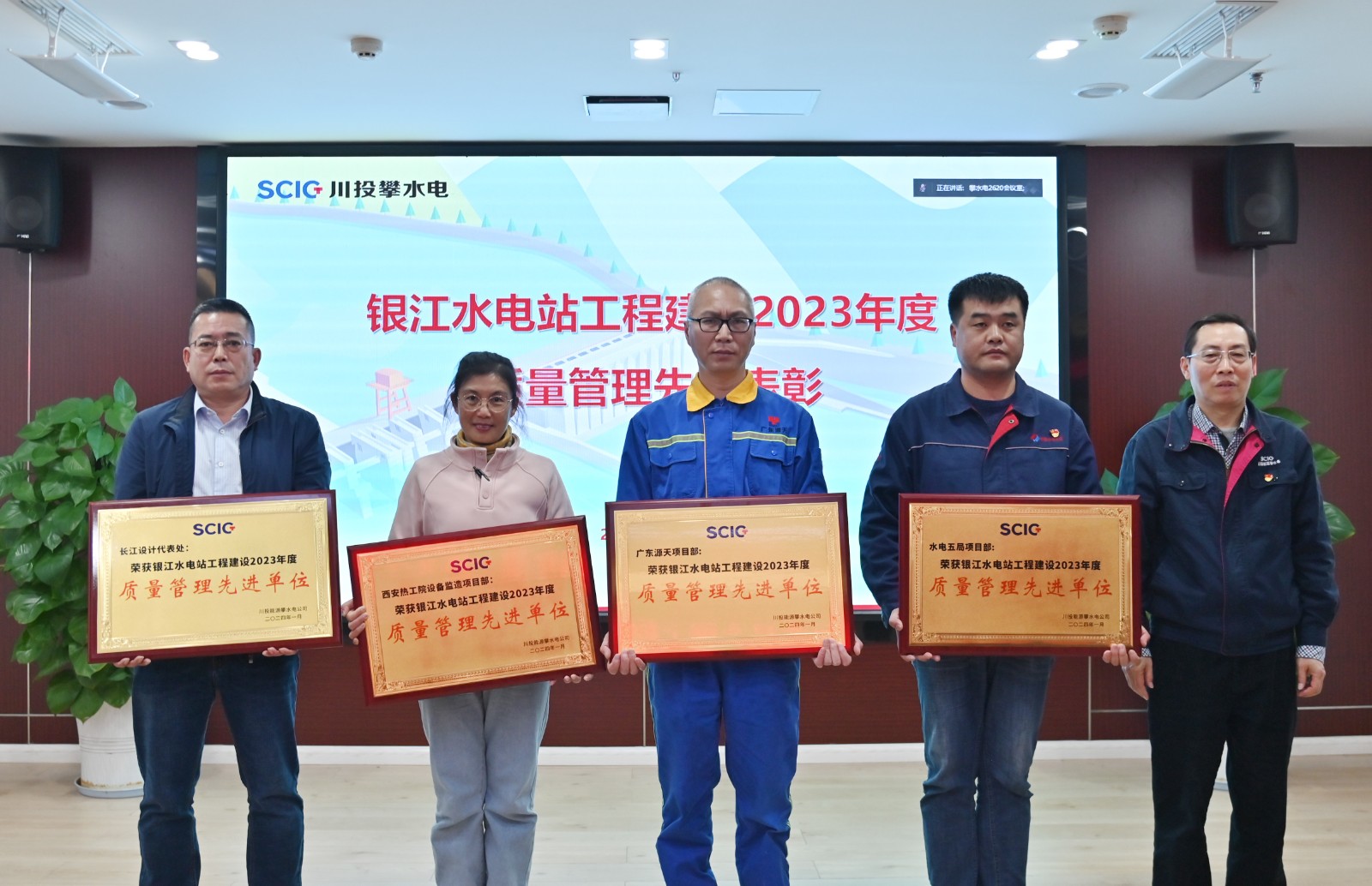 會上,公司副總經(jīng)理唐伽宣讀了《關(guān)于表彰銀江水電站2023年度質(zhì)量管理先進(jìn)單位、先進(jìn)集體和先進(jìn)個人的通報》文件,徐孝剛向榮獲2023年度質(zhì)量管理先進(jìn)單位的長江設(shè)計代表處、西安熱工院設(shè)備監(jiān)造項目部、水電五局項目部、廣東源天項目部頒發(fā)了獎牌;公司黨總支副書記、董事會秘書、工會主席鄧勇,公司黨總支委員、紀(jì)檢小組長楊銳向榮獲先進(jìn)集體的長江設(shè)計代表處壩工專業(yè)組、貴陽院監(jiān)理部土建工程管理部、西安熱工院設(shè)備監(jiān)造項目部駐哈電監(jiān)造站、水電七局項目部砂石工區(qū)、水電五局項目部土建三隊、廣東源天項目部主機(jī)班等13個集體頒發(fā)了獎牌。徐孝剛向獲獎的單位、集體及個人表示了祝賀,要求他們在今后的質(zhì)量管理工作中發(fā)揮好先鋒模范帶頭作用,促進(jìn)各參建單位共同提高質(zhì)量管理水平,把銀江水電站建設(shè)成“精品工程、樣板工程、陽光工程”。