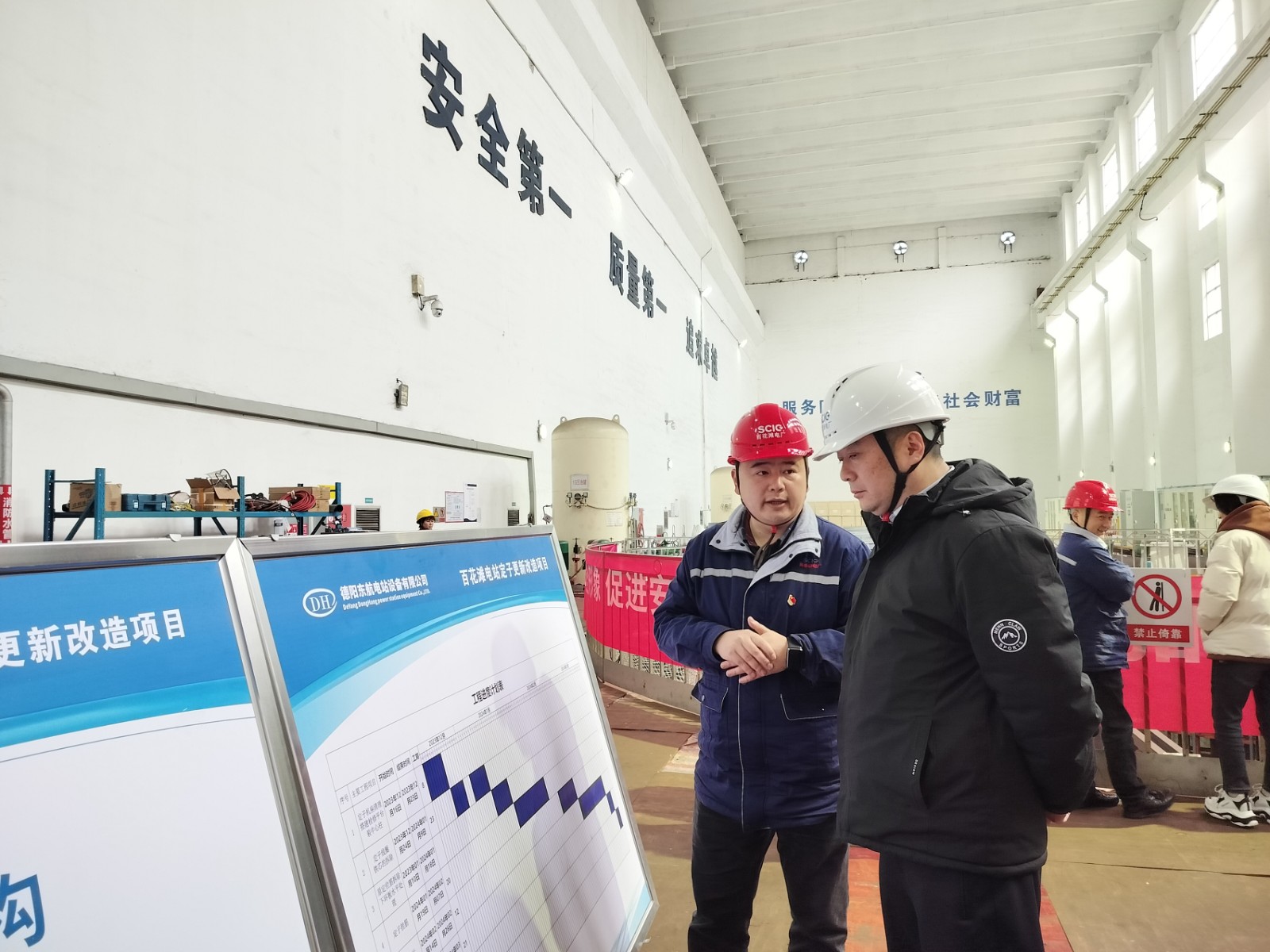 考核結(jié)束后,楊濤一行到百花灘電廠檢查機組A級自主檢修和定子更新改造安全工作。