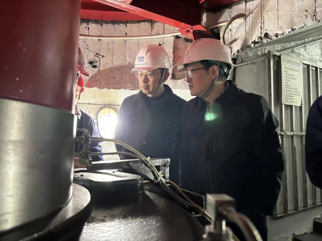 楊平一行實(shí)地察看電廠主廠房、發(fā)電機(jī)主設(shè)備、蝶閥、應(yīng)急物資儲(chǔ)備等情況,翻閱抽查風(fēng)險(xiǎn)隱患管理及水淹廠房應(yīng)急管理等資料,指出存在問題,提出工作要求。