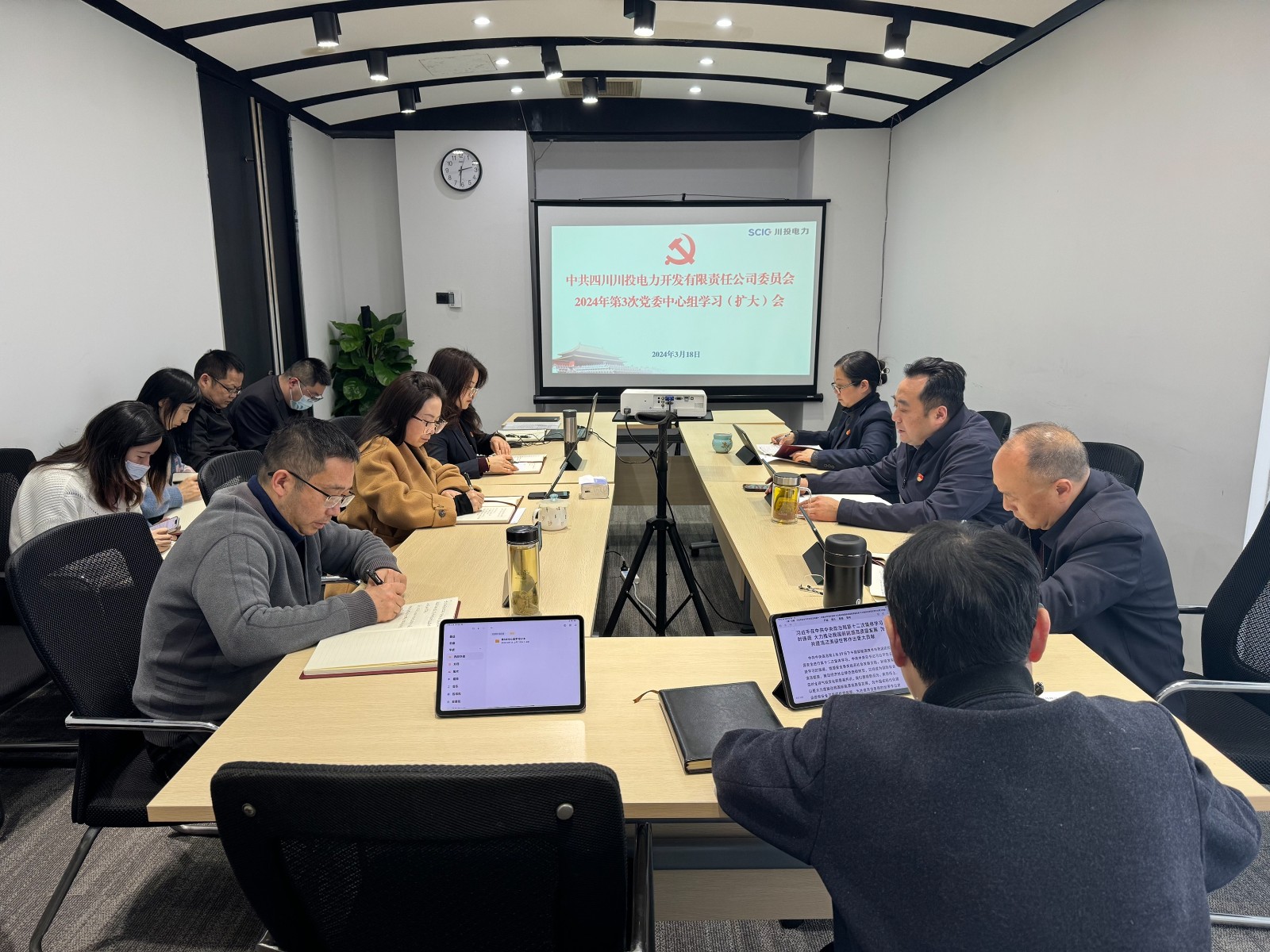 3月18日,川投電力黨委理論學(xué)習中心組召開2024年第3次學(xué)習(擴大)會議。公司黨委書記、董事長楊濤主持會議并結(jié)合工作實際提出工作要求。公司領(lǐng)導(dǎo)班子成員、各部門負責人參加學(xué)習。