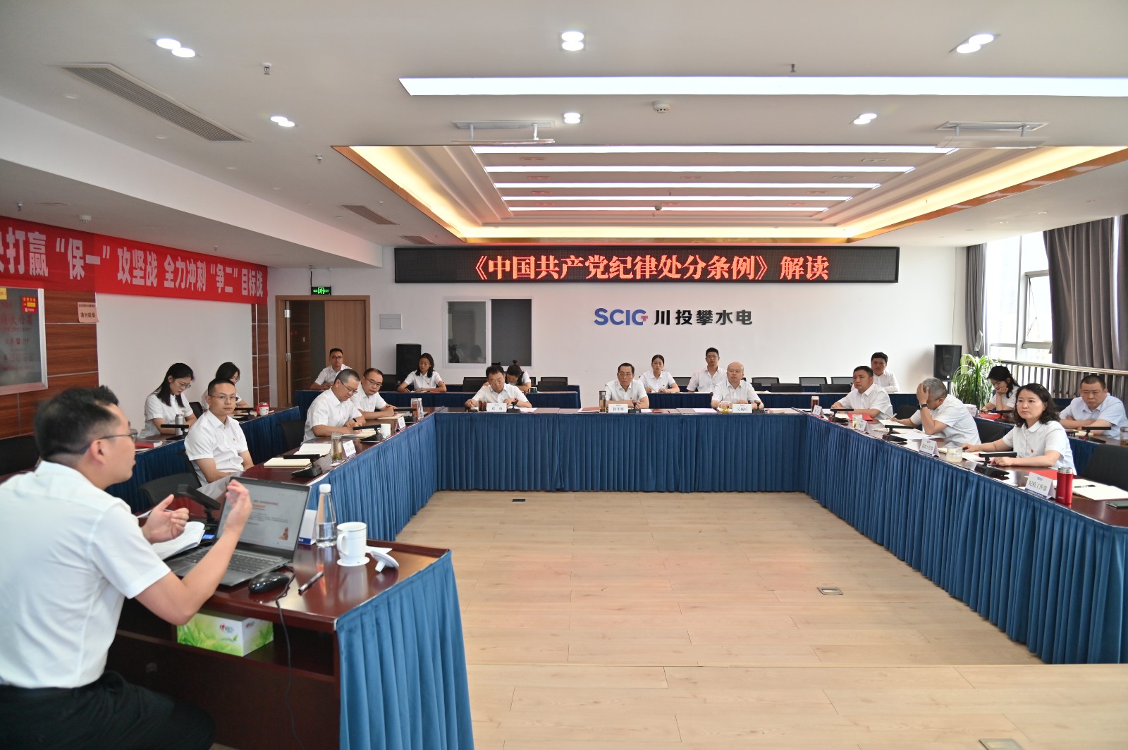 為深入學(xué)習(xí)貫徹習(xí)近平總書(shū)記關(guān)于加強(qiáng)黨的紀(jì)律建設(shè)的重要論述和黨紀(jì)學(xué)習(xí)教育的重要講話指示精神,系統(tǒng)學(xué)習(xí)新修訂的《中國(guó)共產(chǎn)黨紀(jì)律處分條例》,5月9日至11日,攀水電黨總支舉辦黨紀(jì)學(xué)習(xí)教育讀書(shū)班,川投能源副總經(jīng)理、攀水電黨總支書(shū)記、董事長(zhǎng)徐孝剛等公司領(lǐng)導(dǎo)班子成員參加。