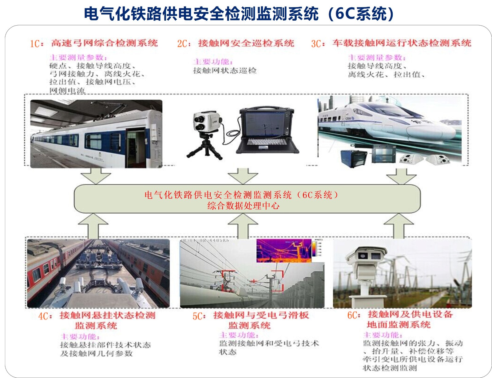 據(jù)統(tǒng)計(jì),近年來鐵路接觸網(wǎng)供電設(shè)備故障主要原因是,供電設(shè)備狀態(tài)異常、外部環(huán)境干擾,且外部環(huán)境原因占比呈逐年上升趨勢。在鐵路安全方面,6C檢測對鐵路接觸網(wǎng)供電設(shè)備的安全起著不可或缺的作用,它可以對接觸網(wǎng)供電設(shè)備進(jìn)行全方位、全覆蓋的綜合檢測,精準(zhǔn)高效地找出設(shè)備的隱患。