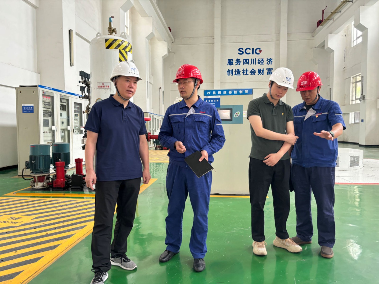 檢查組一行先到生產(chǎn)一線對主廠房設(shè)備設(shè)施、大壩水庫調(diào)度、生態(tài)流量下泄、應(yīng)急物資儲備、中控室生產(chǎn)運行情況進(jìn)行了重點查看,檢查中,腳基坪電廠廠長趙兵對應(yīng)急物資儲備情況、防汛應(yīng)急預(yù)案、汛期值班值守、地質(zhì)災(zāi)害風(fēng)險辨識和防范措施等情況進(jìn)行了匯報,陶世賢對腳基坪電廠在防汛減災(zāi)各項工作落實情況給予了充分的肯定。