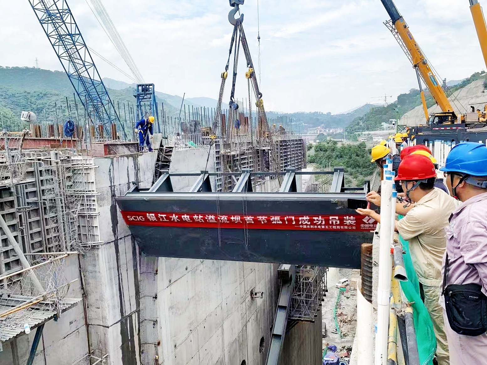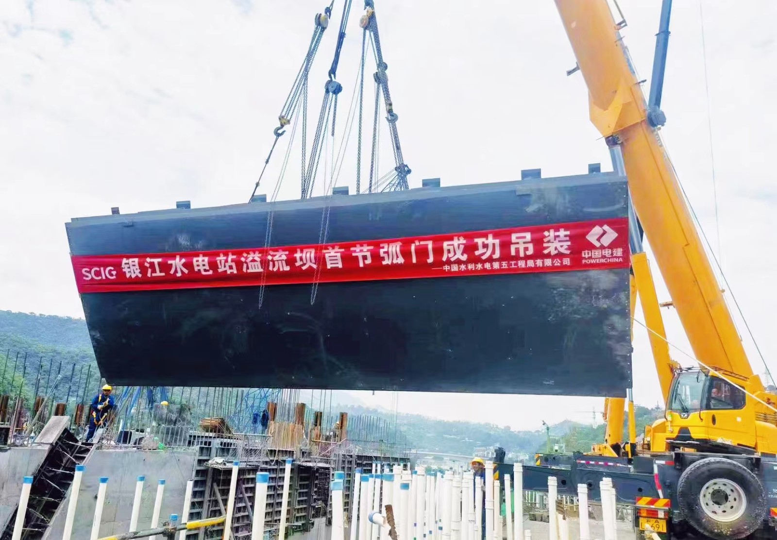 7月22日,正值銀江水電站開工建設(shè)五周年紀(jì)念日之際,工程建設(shè)再傳捷報(bào),首節(jié)弧形工作門吊裝成功,標(biāo)志著銀江水電站閘門安裝高峰期正式拉開序幕。