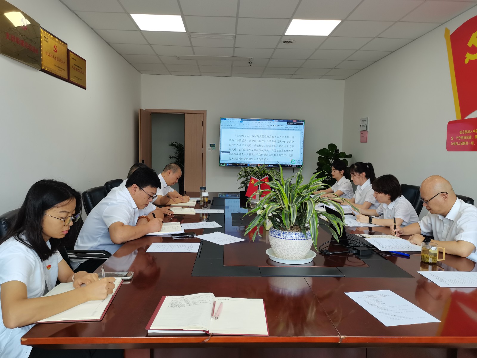 會議首先進行了第一議題學(xué)習(xí),由支部書記周弋力領(lǐng)學(xué)了習(xí)近平總書記重要文章《必須堅持自信自立》;重點學(xué)習(xí)了中國共產(chǎn)黨第二十屆中央委員會第三次全體會議公報,傳達了王曉暉在全省縣域經(jīng)濟高質(zhì)量發(fā)展推進會議上的講話精神;隨后,由支部書記講授了《新修訂<中國共產(chǎn)黨紀律處分條例>解讀》紀律黨課,紀檢委員盛詩棋進行《以案為鏡鑒以廉為底線》案例剖析。參會黨員緊扣黨的六項紀律,結(jié)合自身實際情況逐一交流發(fā)言,分別從工作紀律、日常言行、家風(fēng)家教等方面進行了研討。最后,支部委員會向大會通報了支部黨員發(fā)展相關(guān)情況。