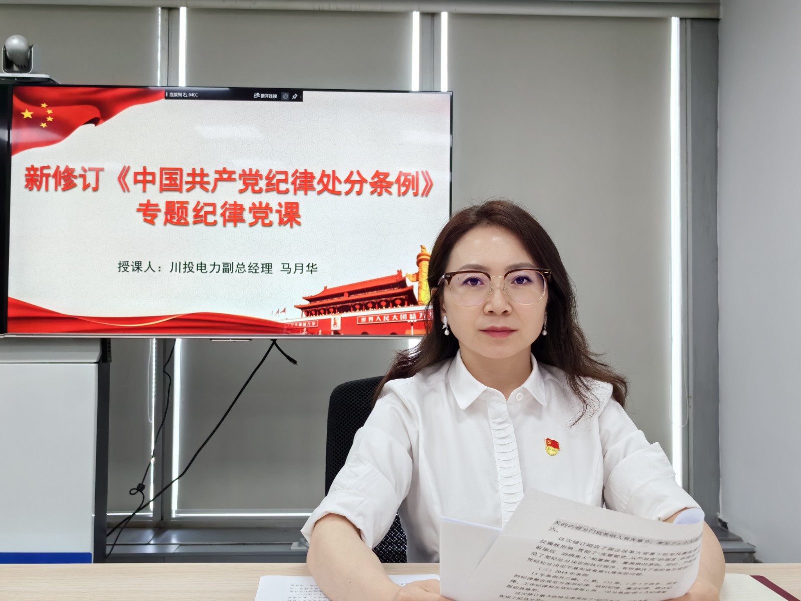 會上,川投電力副總經理馬月華為支部全體黨員講授專題紀律黨課。馬月華主要圍繞《中國共產黨紀律處分條例》的歷史沿革、修訂概要和條文解讀三個方面開展授課,并結合警示教育案例,通過“以案說紀、以案說規(guī)”警示廣大黨員以案為鑒,強化了全體黨員干部對條例的理解和認識。馬月華強調:一要堅守紀律底線,加強廉政建設。要時刻以黨員的標準嚴格要求鞭策自己,時刻牢記黨規(guī)黨紀,自覺接受監(jiān)督,守住紅線底線。二要堅守政策底線,強化黨員意識。強化責任意識,正確處理個人與組織的關系,堅決服從組織安排,積極主動完成黨組織交辦的任務。三要堅守道德底線,做到廉潔自律。堅持“勿以惡小而為之,勿以善小而不為”,時刻自重自省自警自勵,遵守道德規(guī)范,遵守黨的紀律,做到懂法紀、明規(guī)矩、知敬畏、存戒懼,筑牢拒腐防變的防線。