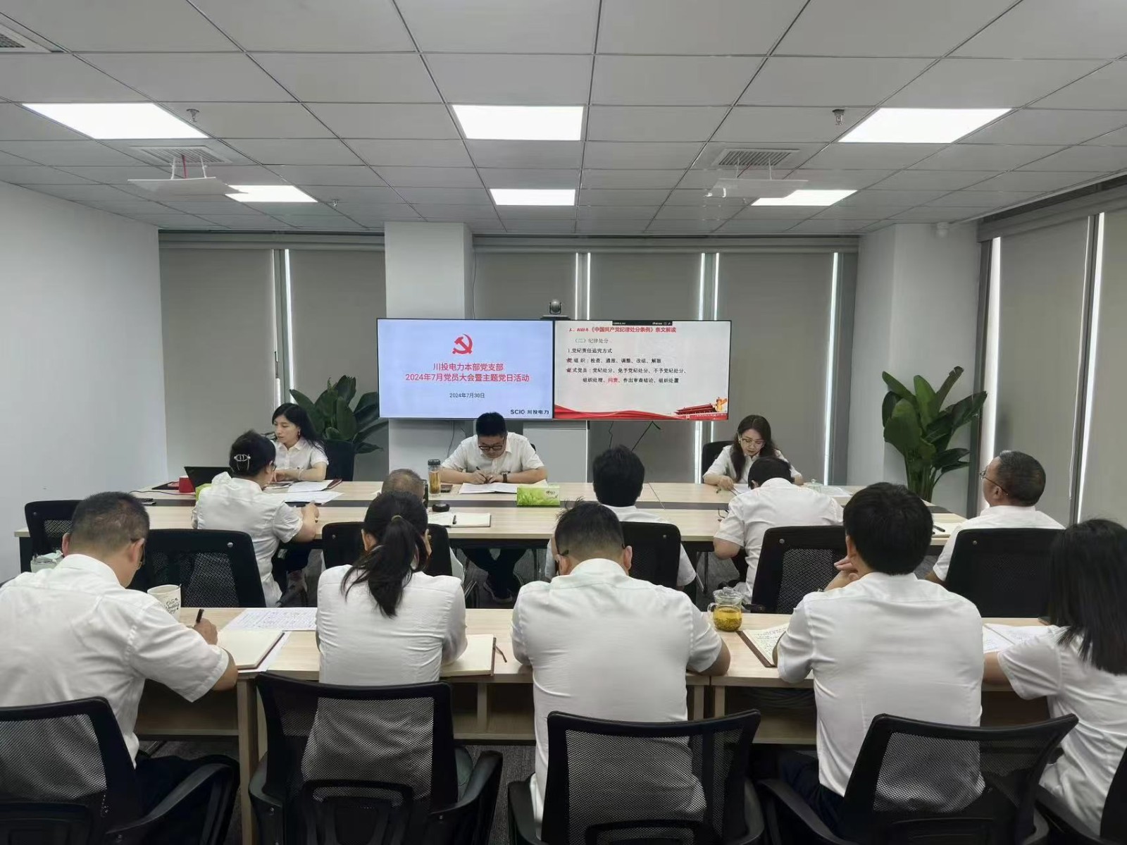 為貫徹落實習近平總書記關于全面加強黨的紀律建設的重要論述,增強全體黨員干部紀律意識、規(guī)矩意識,持續(xù)深化黨紀學習教育,推動省委十二屆五次全會精神落地落實,7月30日,川投電力本部黨支部召開7月主題黨日活動。會議由支部書記李天宏主持,支部全體黨員、入黨積極分子參加會議。