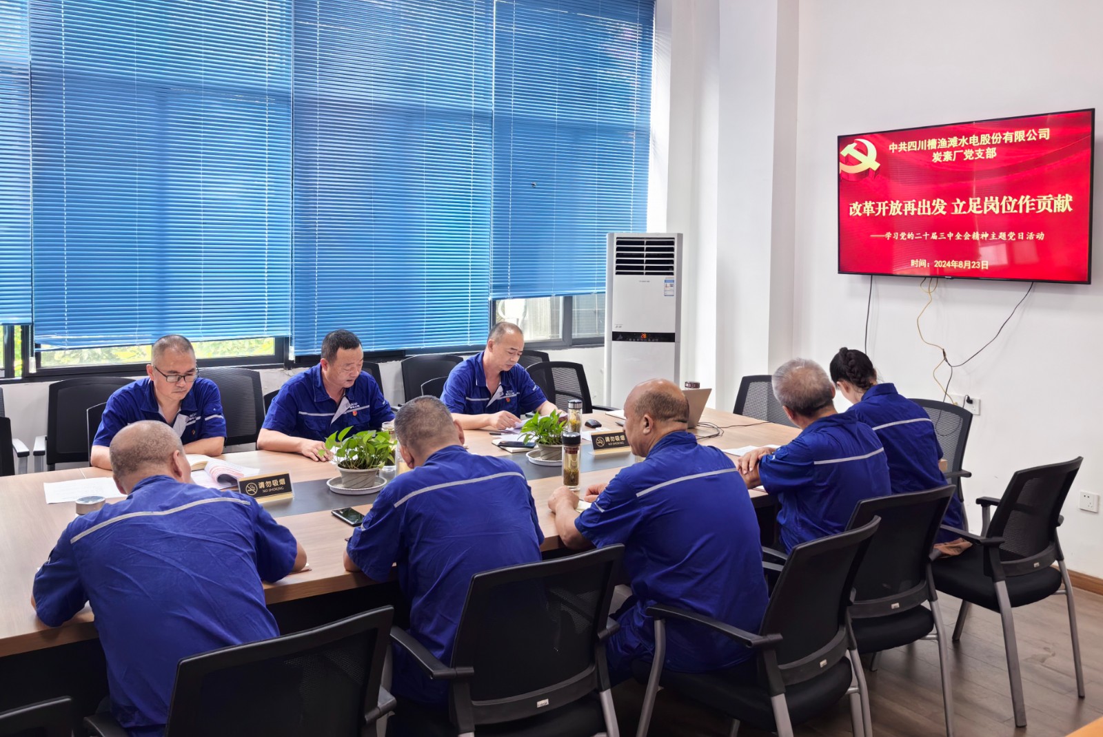 為深入學(xué)習(xí)貫徹黨的二十屆三中全會精神,進(jìn)一步統(tǒng)一思想、凝聚共識,近日,槽漁灘公司炭素廠黨支部開展“改革開放再出發(fā),立足崗位作貢獻(xiàn)”主題黨日活動。會議由支部書記、廠長白增明主持,支部黨員、入黨積極分子參加會議。