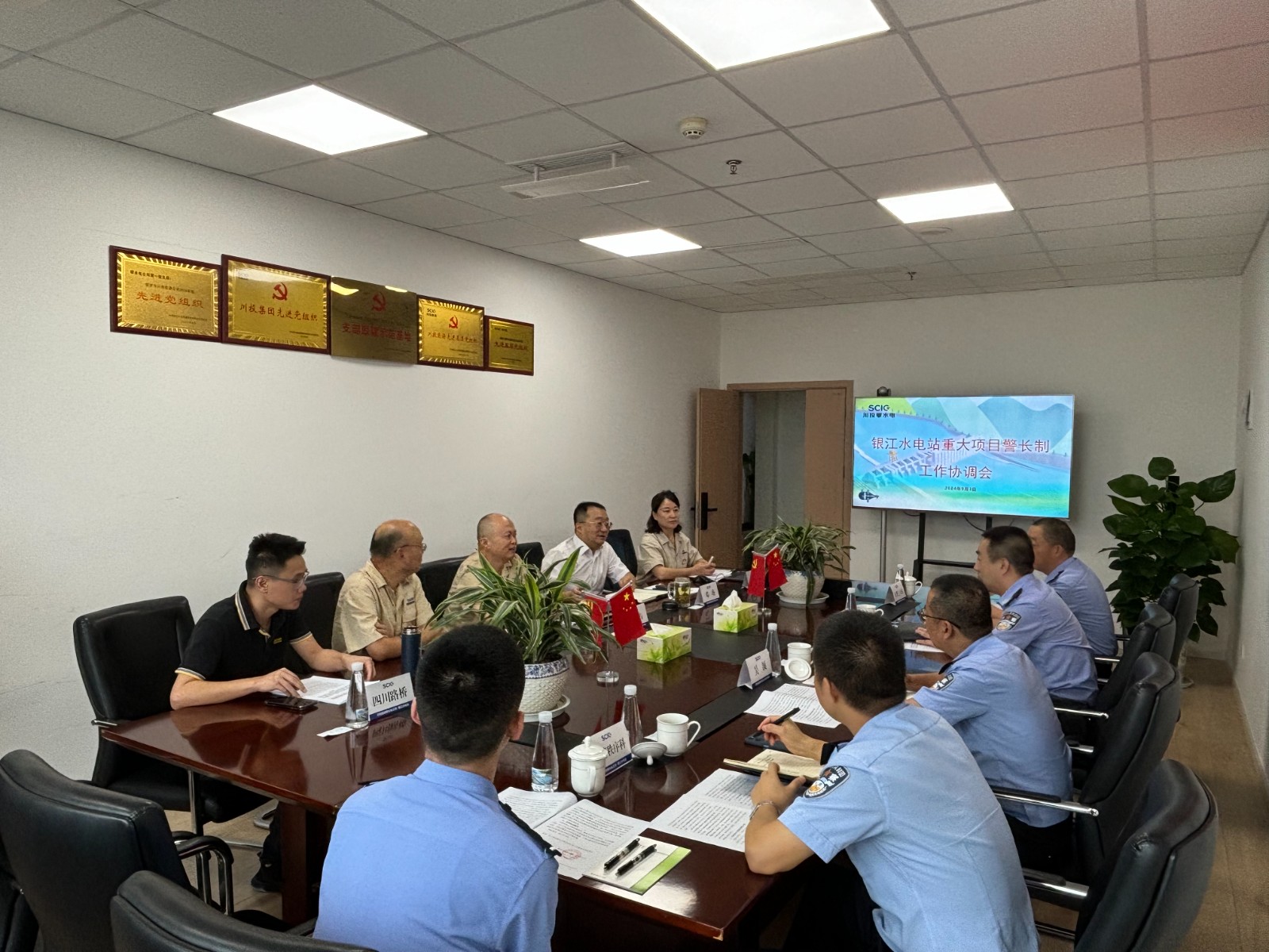 為保障銀江水電站重大項(xiàng)目安全順利推進(jìn),護(hù)航服務(wù)攀枝花市高質(zhì)量發(fā)展建設(shè)共同富裕試驗(yàn)區(qū),攀枝花市公安局與攀水電公司建立了銀江水電站“重大項(xiàng)目警長制”,9月3日上午,市公安局機(jī)關(guān)黨委副書記張征帶隊(duì)赴公司召開工作協(xié)調(diào)會(huì)議。攀水電公司黨總支副書記、總經(jīng)理、聯(lián)絡(luò)工作組組長吳巍嶼出席會(huì)議,交警支隊(duì)辦公室、秩序科、三大隊(duì)及公司相關(guān)部門等10余人參加會(huì)議。
